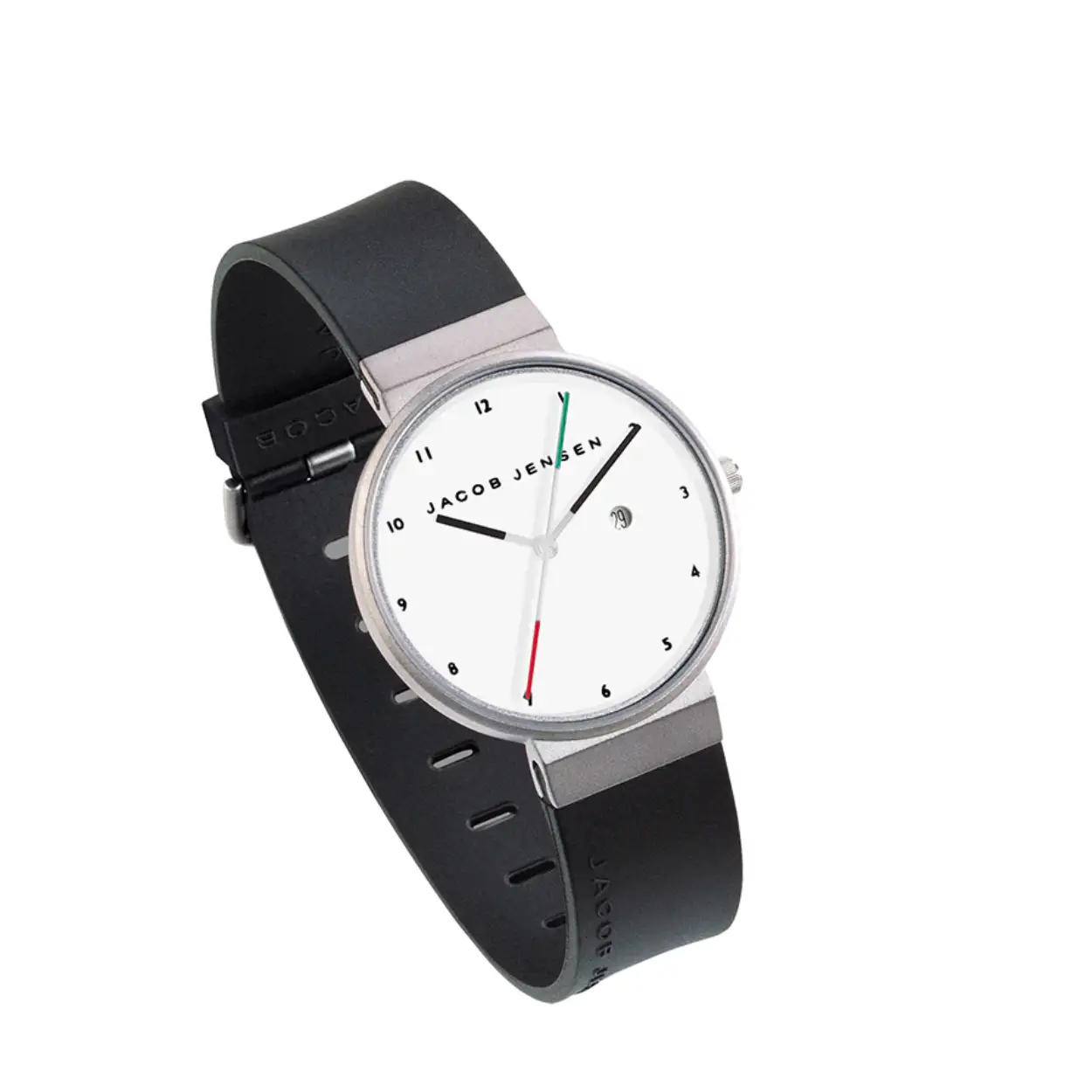 Dit Jacob Jensen horloge uit de New Premium serie heeft een kast gemaakt van Titanium met een diameter van 35.5 mm en is voorzien van een Rubber band. In de kast bevindt zich een Ronda kwaliteitsuurwerk en is afgewerkt met Saffierglas.