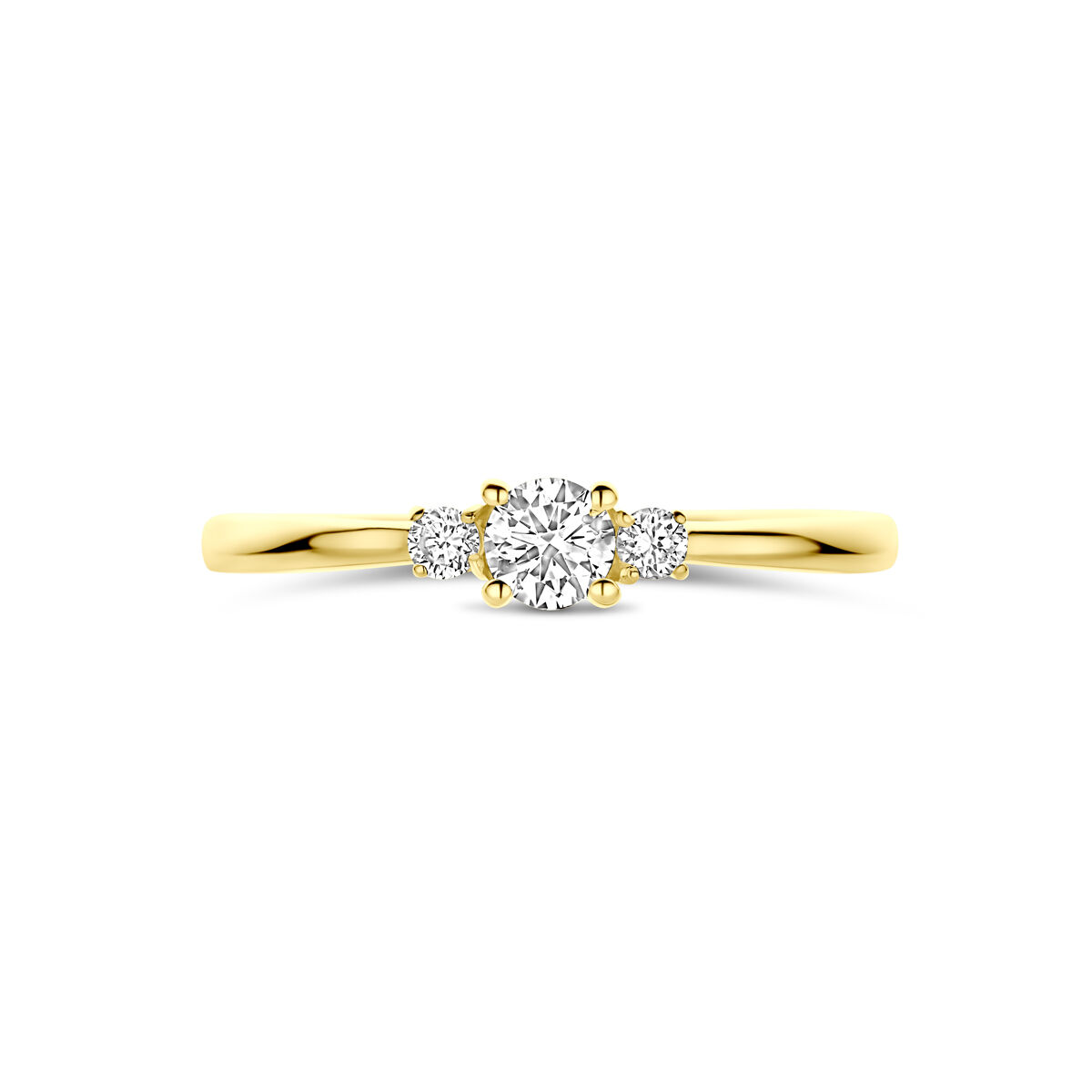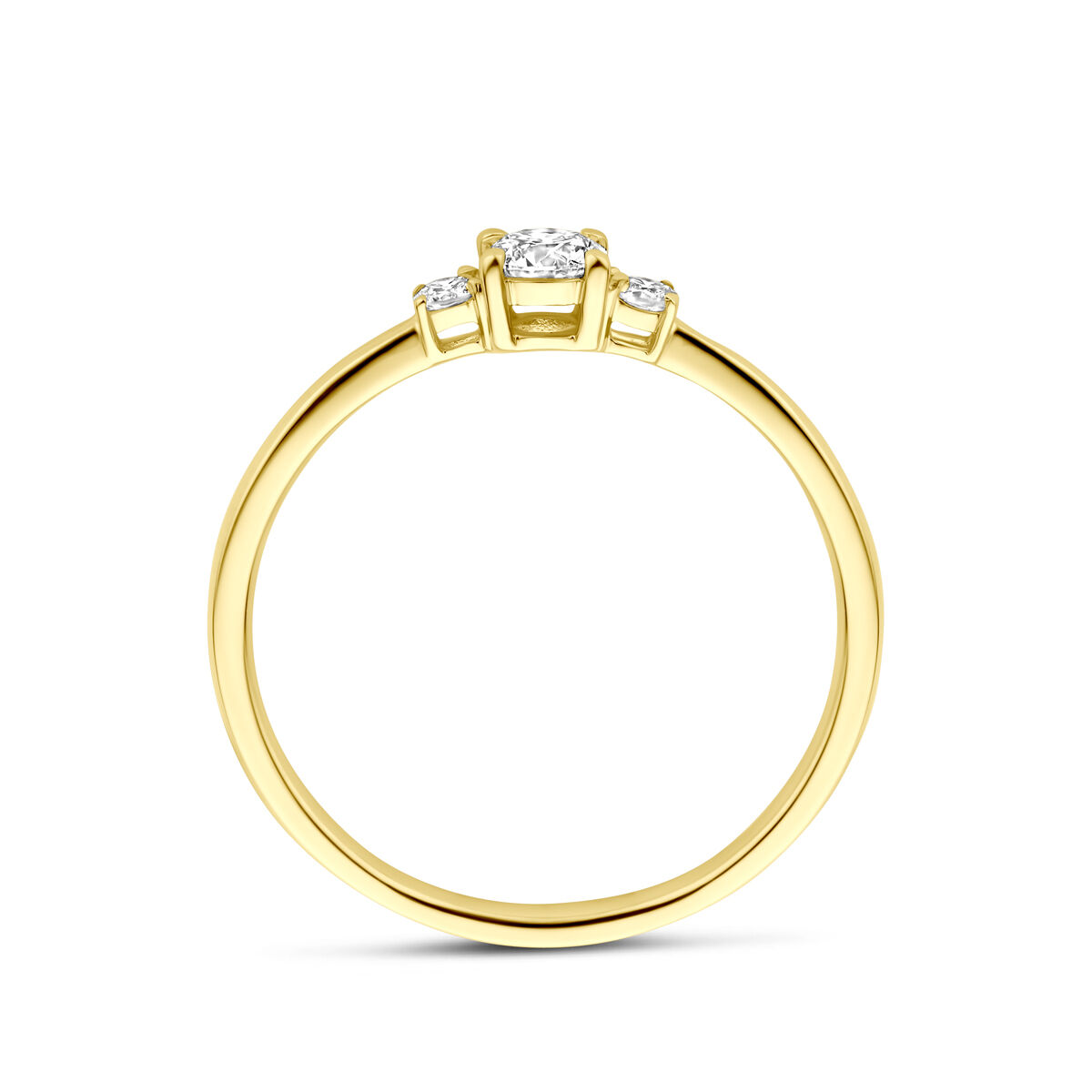 14k Geelgouden ring uitgevoerd met een lab grown diamant met een totaalgewicht van 0.25ct. Lab grown diamanten zijn diamanten die ontstaan in een laboratorium. Onder extreem hoge druk en temperatuur wordt het natuurlijk ontstaansproces nagebootst met als eindresultaat een diamant met dezelfde chemische eigenschappen maar met een andere oorsprong.
