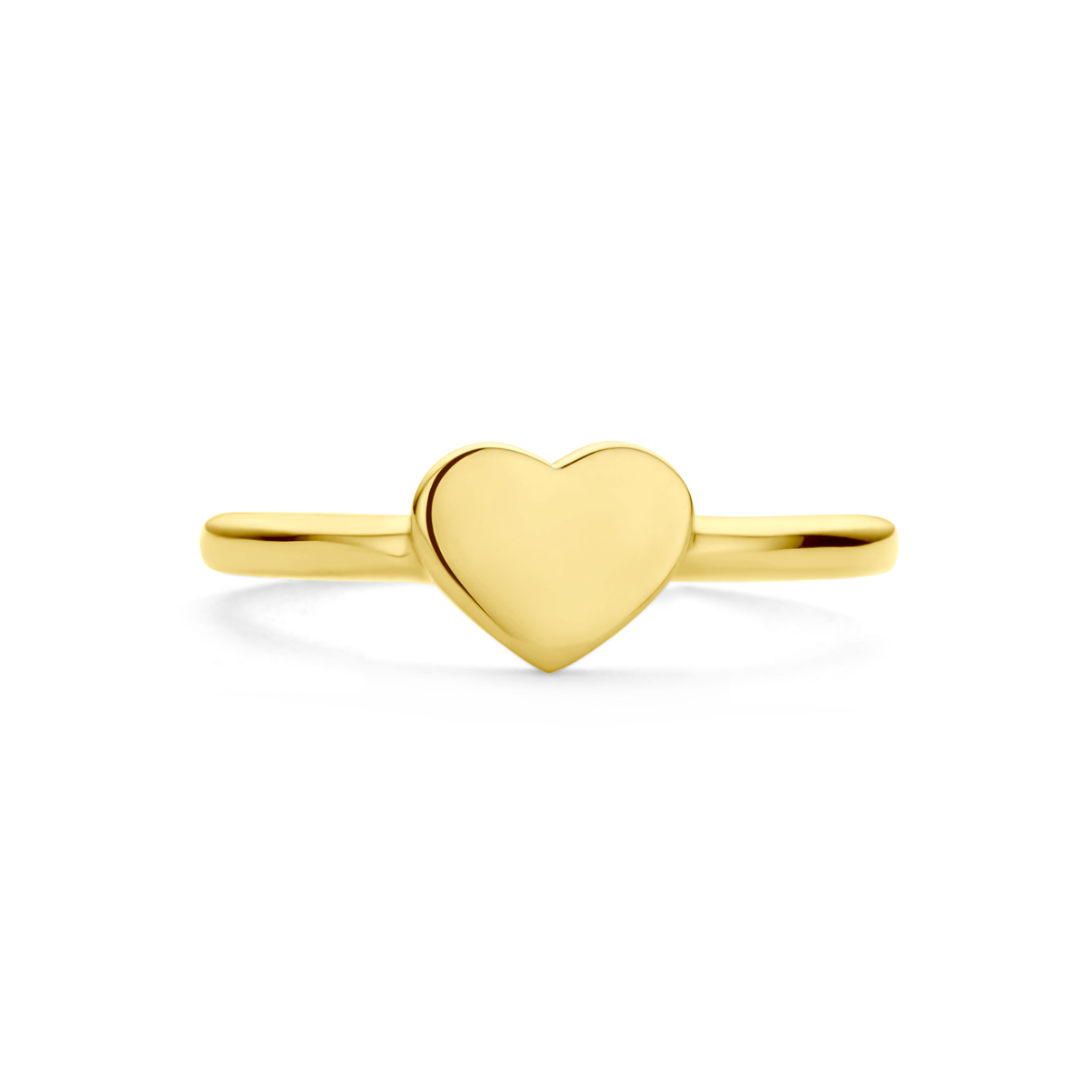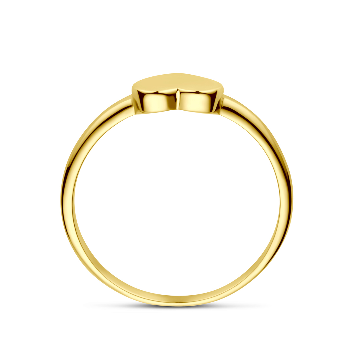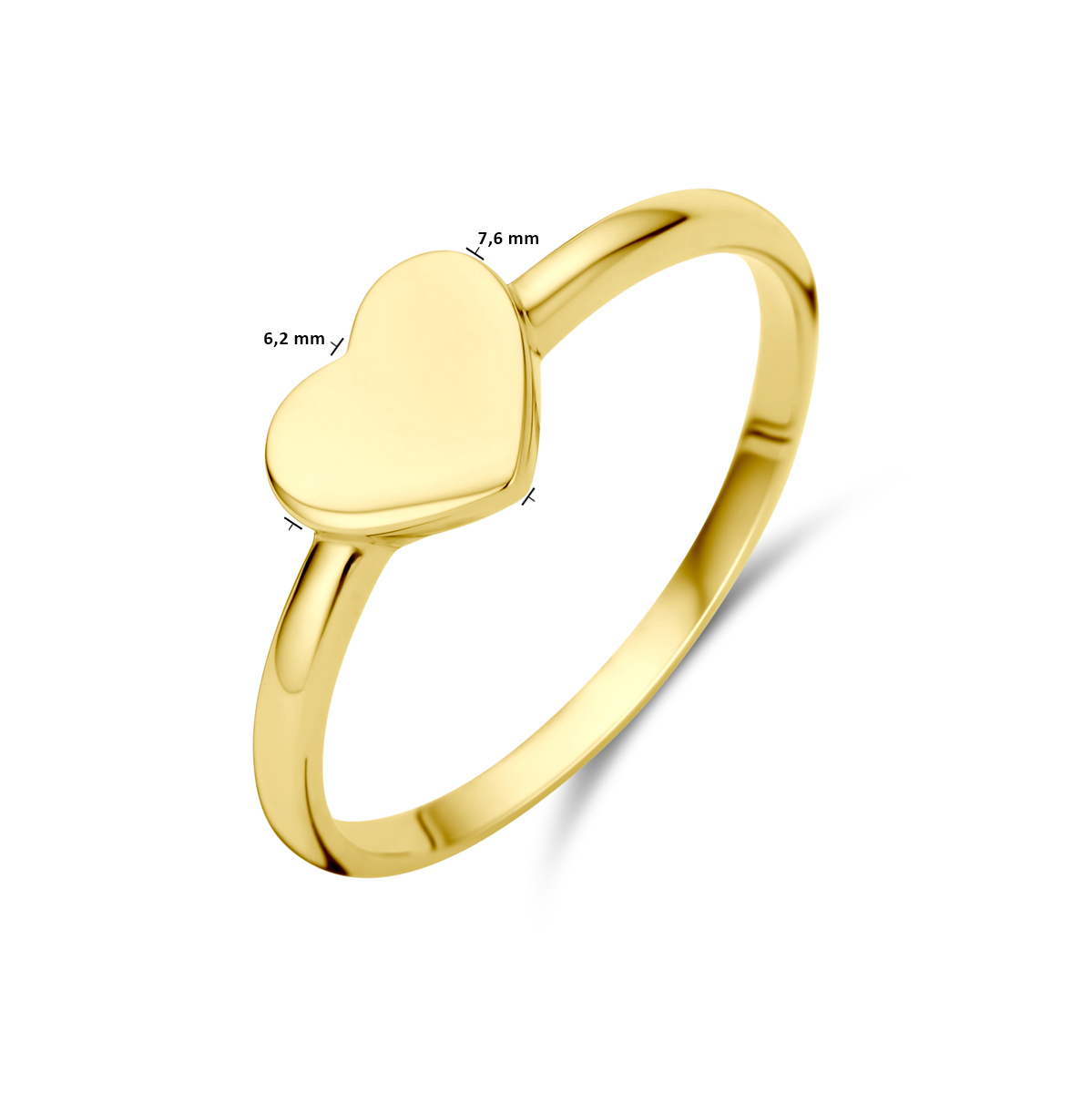 14k Geelgouden ring uitgevoerd met hart. De ring heeft een afmeting van 6.2x7.6mm.