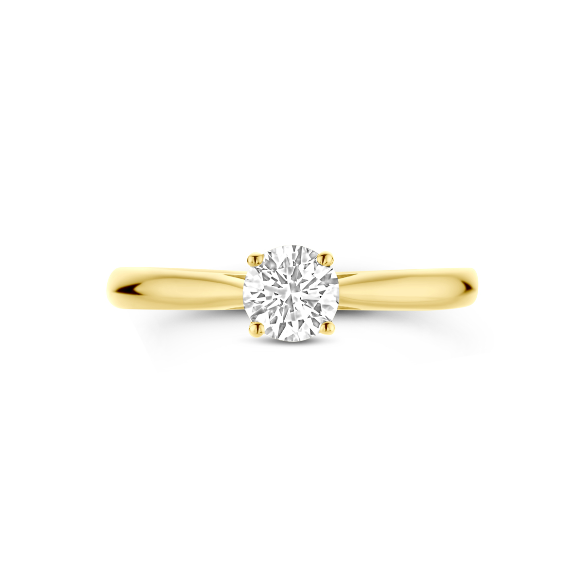 14k Geelgouden ring uitgevoerd met lab grown diamant. De ring heeft een breedte van 5mm. Het diamantgewicht is 0.50ct. Lab grown diamanten zijn diamanten die ontstaan in een laboratorium. Onder extreem hoge druk en temperatuur wordt het natuurlijk ontstaansproces nagebootst met als eindresultaat een diamant met dezelfde chemische eigenschappen maar met een andere oorsprong. Dit artikel wordt geleverd met certificaat van de diamant.