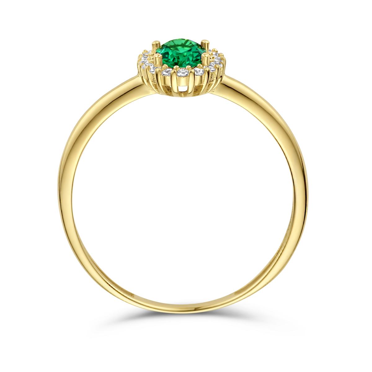 14k Geelgouden ring uitgevoerd met schitterende groene zirkonia. De ring heeft een breedte van 8.5mm.