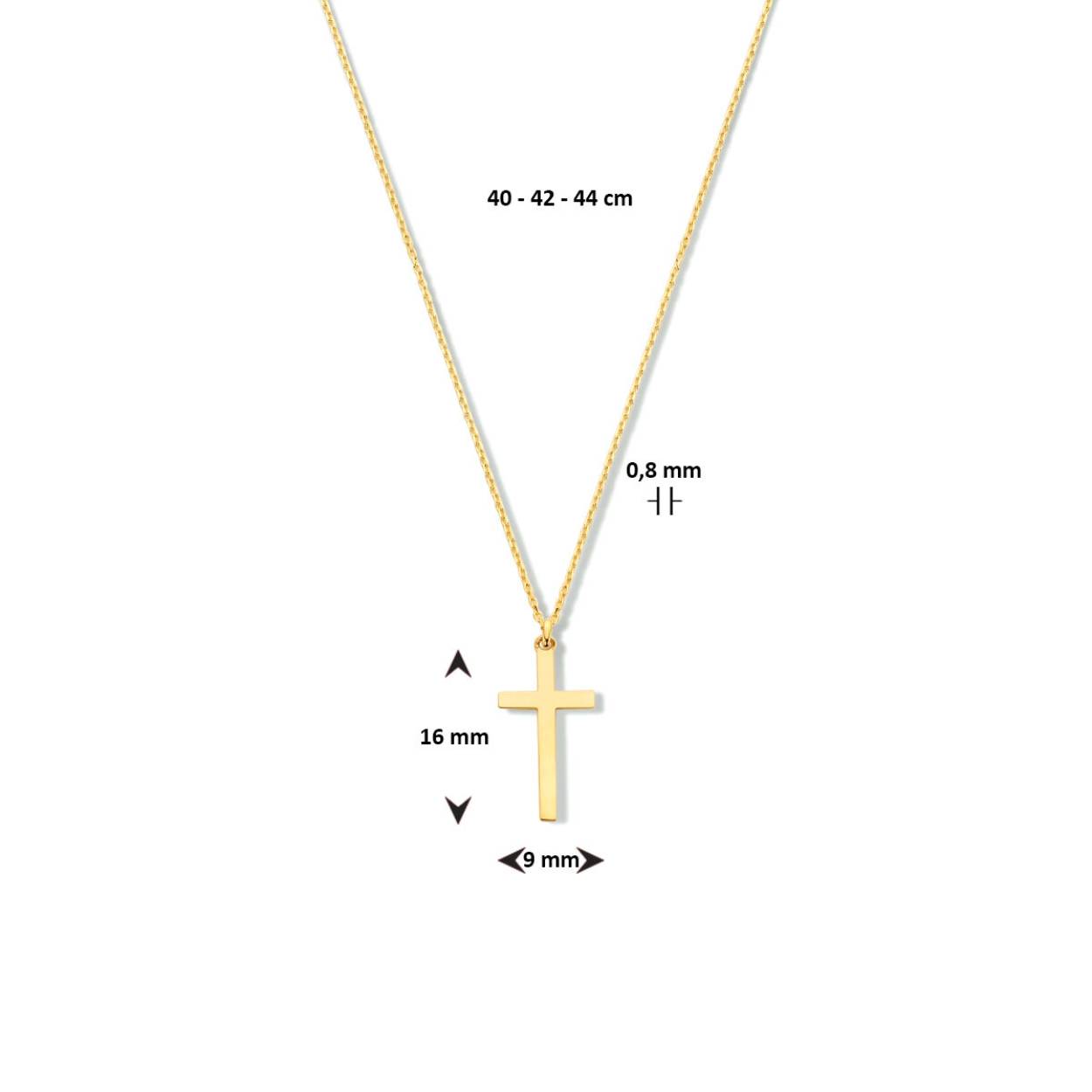 14k Geelgouden collier uitgevoerd met een kruis van 16x9mm. Het collier heeft draaglengtes van 40, 42 en 44cm.