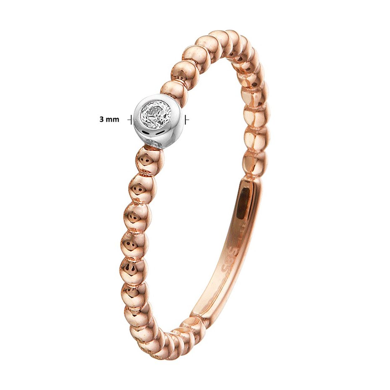 14k Rosegouden ring uitgevoerd met een heldere zirkonia. De ring heeft een breedte van 3mm.