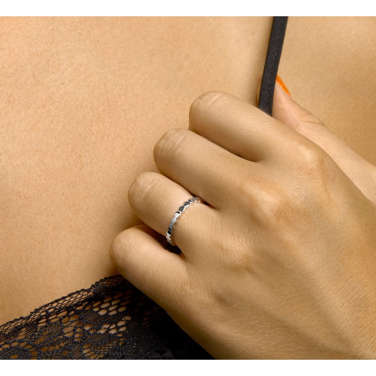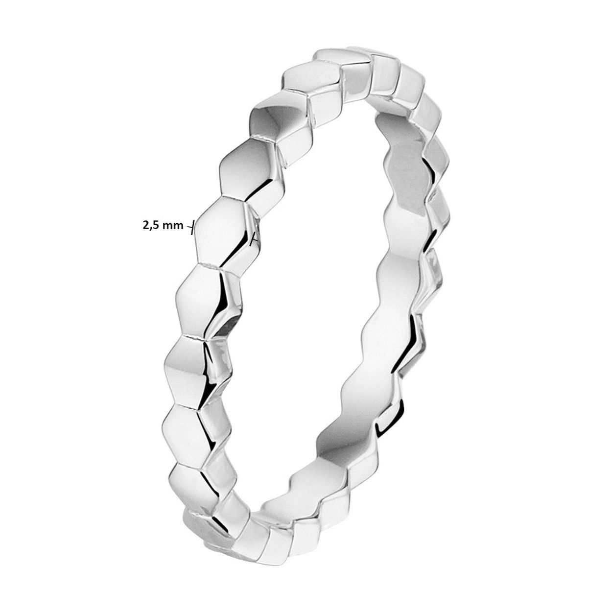 Gerhodineerd 925 zilveren ring uitgevoerd met zeshoeken. De ring heeft een breedte van 2.5mm.