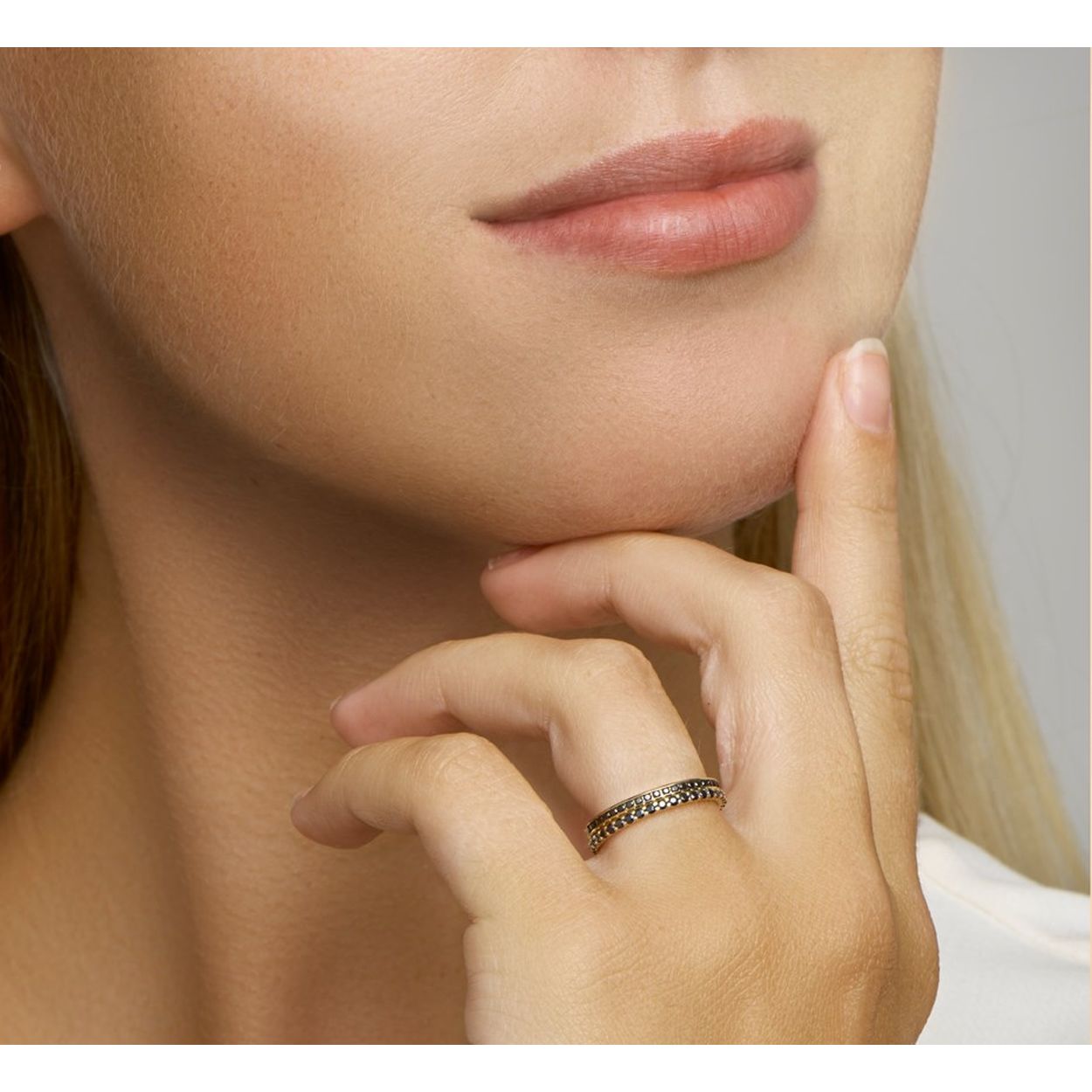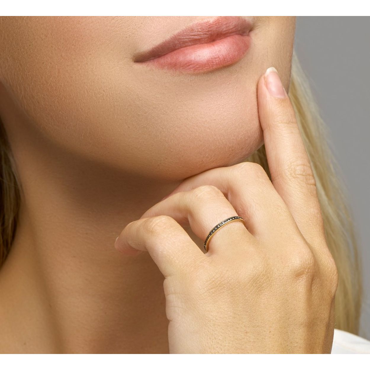 14k Geelgouden aanschuifring uitgevoerd met zwart zirkonia. De ring heeft een breedte van 2mm. Tip: Combineer de ring met andere aanschuifringen voor een unieke look.