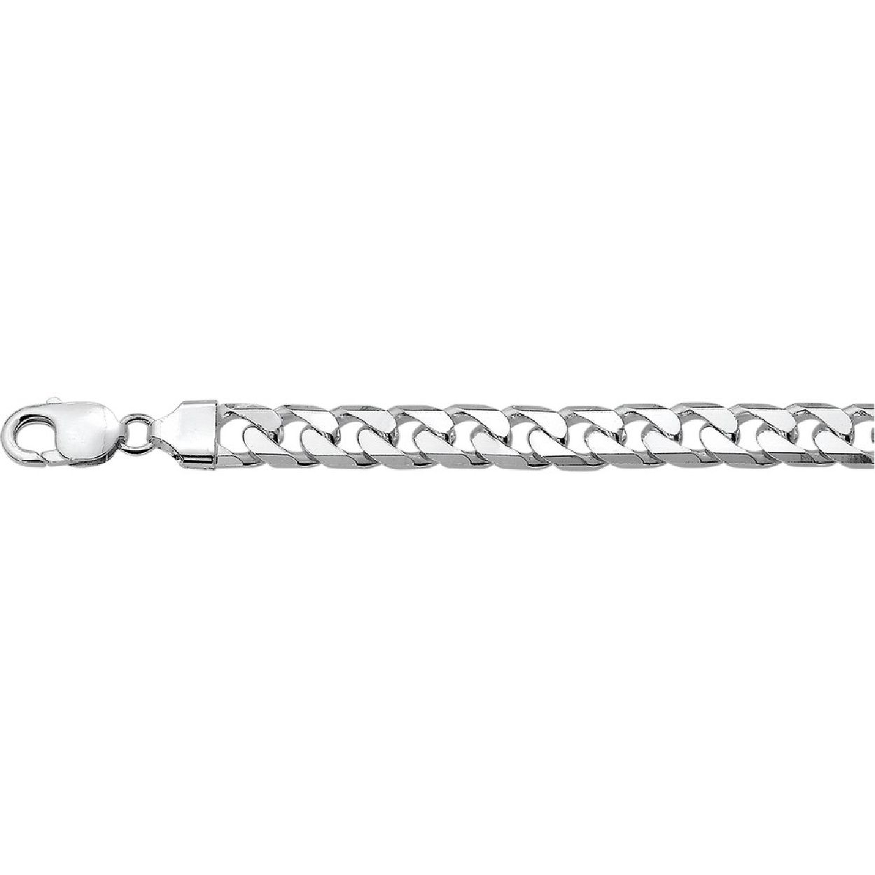 De armband is gemaakt van zilver en is zilverkleurig. Het is een sieraad voor heren.