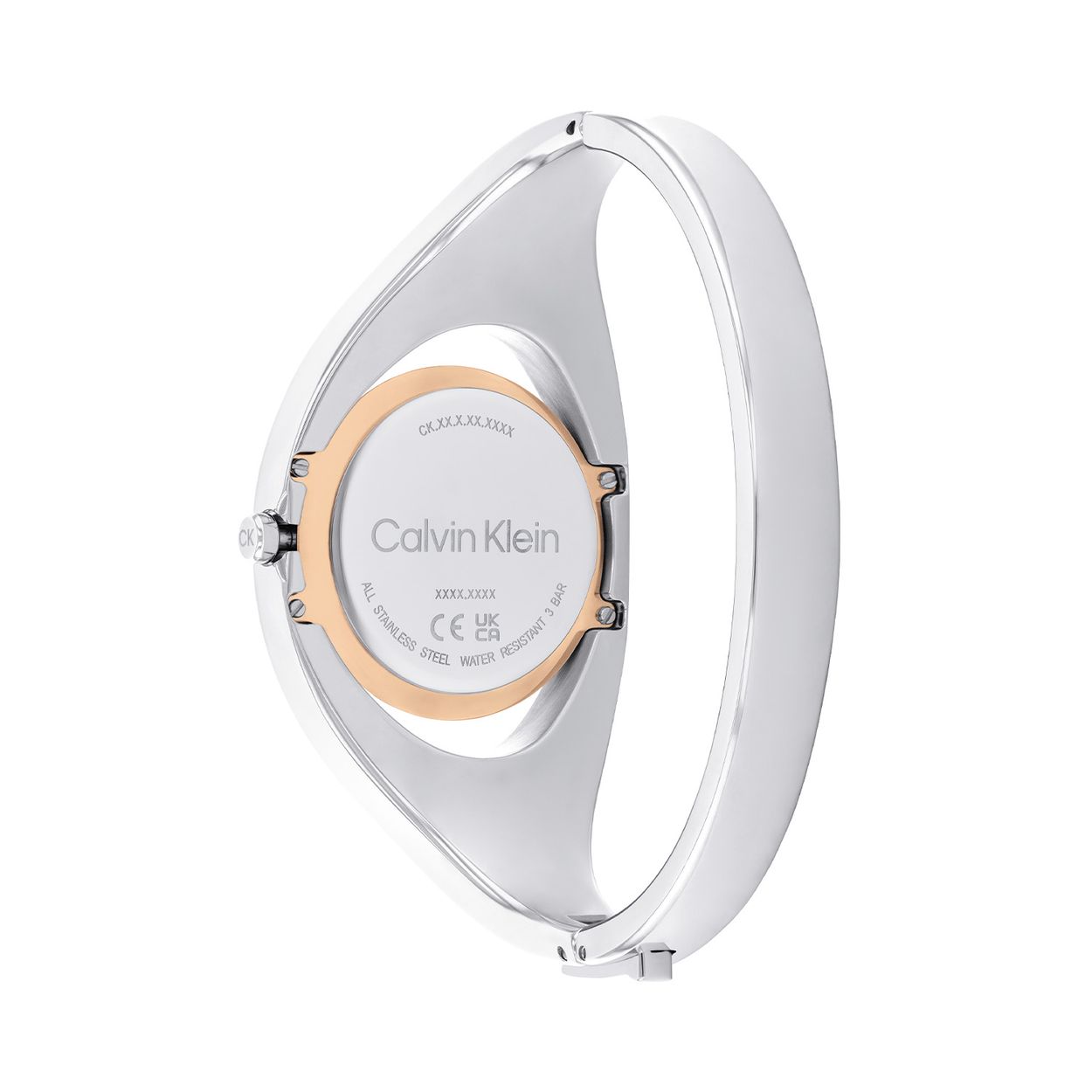 Dit Calvin Klein dameshorloge met nr CK25200424 is een chique ontwerp. De stijlvolle zilverkleurige ronde stalen kast heeft een rosékleurige opening in de rand, dit geeft het klokje een zwevend effect in de band. Op de zilverkleurige sunray wijzerplaat zijn de fijne wijzers mooi zichtbaar en staat de naam Calvin Klein afgedrukt. Het bezondere aan dit model is een doorlopende zilverkleurige bangle band. Het sierlijke horloge heeft een mineraalglas, een doorsnee van 30mm en is 3 ATM.