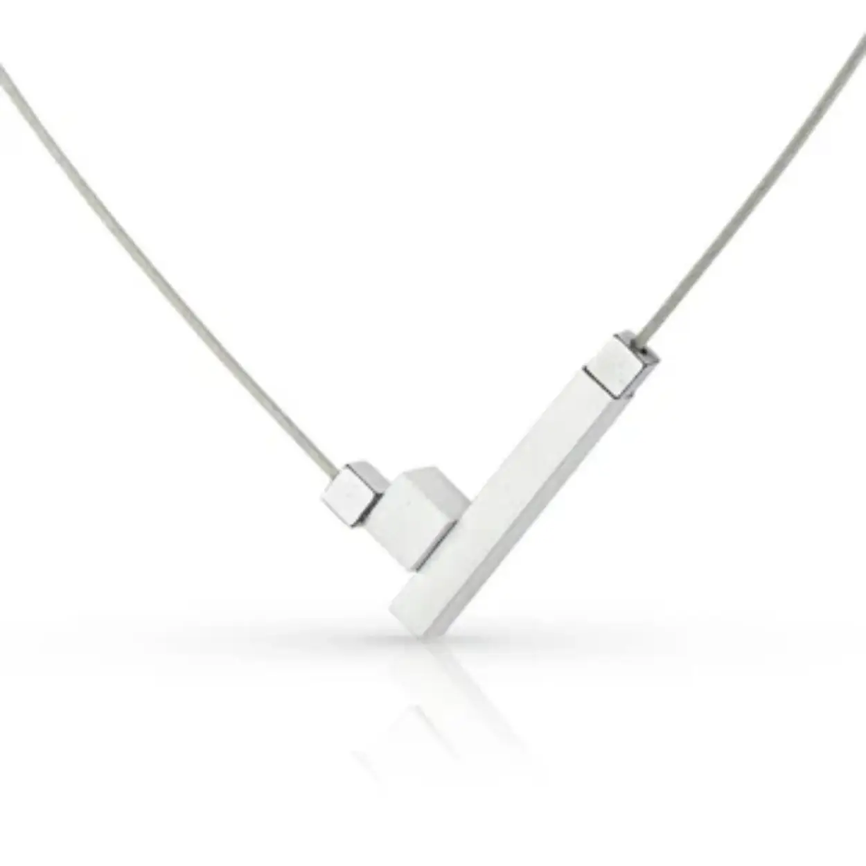 Collier van klein vierkant en rechthoek met een glanzend kubusje van hematiet. Het sluit met een magnetische sluiting tussen de gekleurde delen in het voorste ornament. Dit collier is verkrijgbaar in verschillende kleuren en heeft een soepel vallende edelstalen collier draad. Dit eenvoudige basis collier kun je altijd combineren met andere items uit onze collectie zoals de kleine kubus oorknopjes O28 en de ring R4. Tijdloos en basic in de vormgeving.
