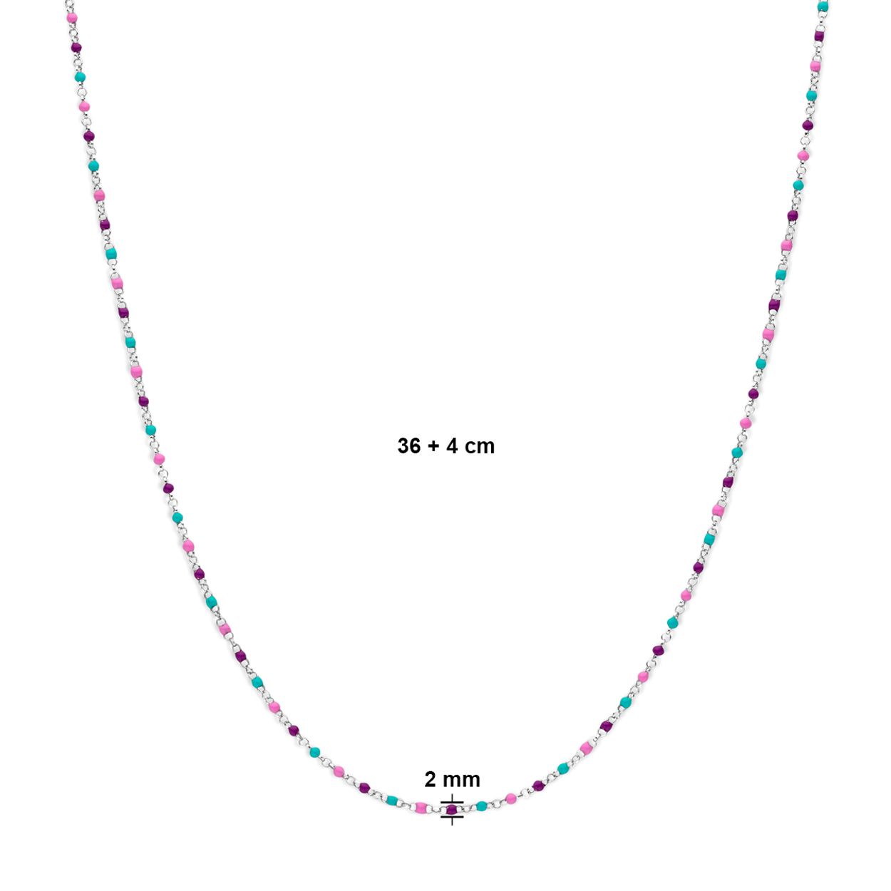 Gerhodineerd 925 zilveren collier uitgevoerd met emaille bolletjes. Het collier heeft een draaglengte van 36cm en een extensie van 4cm. Uitgevoerd met karabijnsluiting. De schakelbreedte is 1.7mm.
