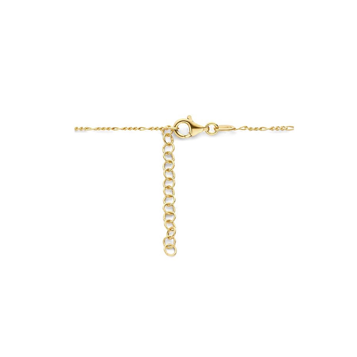 Geelgoud op 925 zilveren figaro collier met een schakelbreedte van 1.4mm. Het collier heeft een draaglengte van 40cm met een extensie van 4cm en een stevige karabijn sluiting.