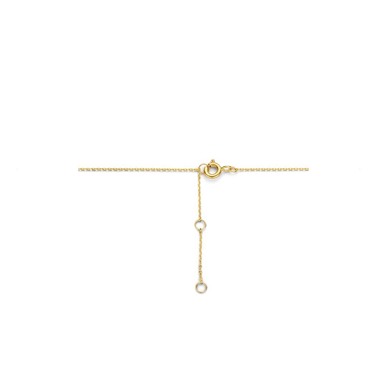 14k Geelgouden collier uitgevoerd met twee rondjes met een diameter van 7.5mm. Het collier heeft draaglengtes van 40, 42 en 44cm.