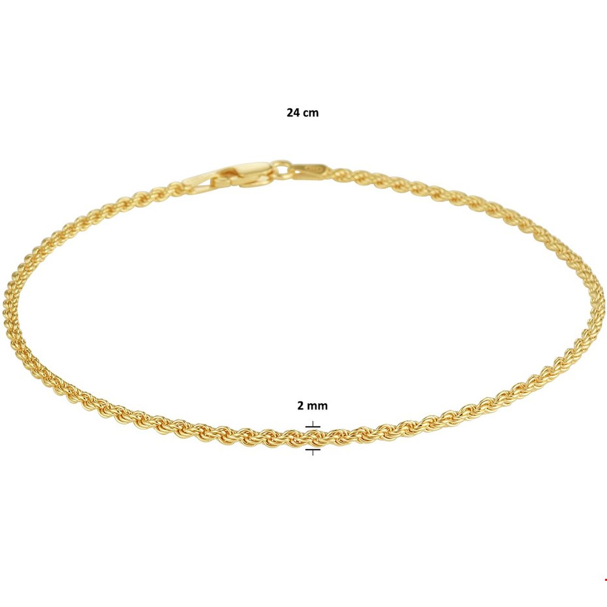 Beschrijving: Geelgoud op zilveren enkelbandje met een koord schakel en een karabijn sluiting. Dit fijne enkelbandje is goed te combineren met bijpassende sieraden uit onze collectie. De lengte bedraagt 24cm en de schakelbreedte is 2mm.