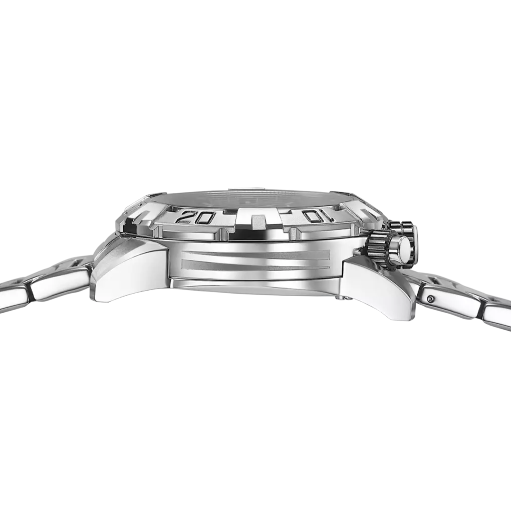 De Festina Bullhead F20743/1 valt op door zijn donkerblauwe wijzerplaat die de krachtige en mannelijke stijl benadrukt. De kast van 45 mm en de roestvrijstalen band bieden stevigheid en elegantie. Het Bullhead-ontwerp, met drukknoppen bovenaan de kast, zorgt voor een unieke ergonomie en een onmiskenbare uitstraling om de pols.