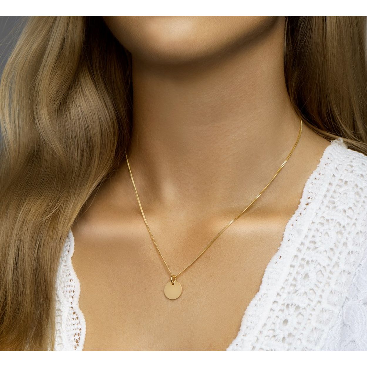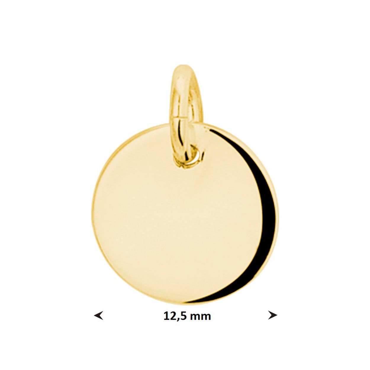 Geelgoud op 925 zilveren ronde graveerhanger. De hanger heeft een diameter van 12.5mm.