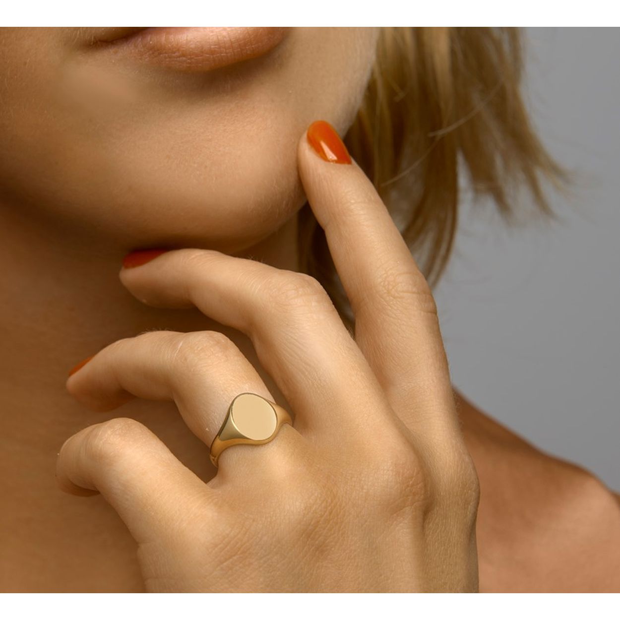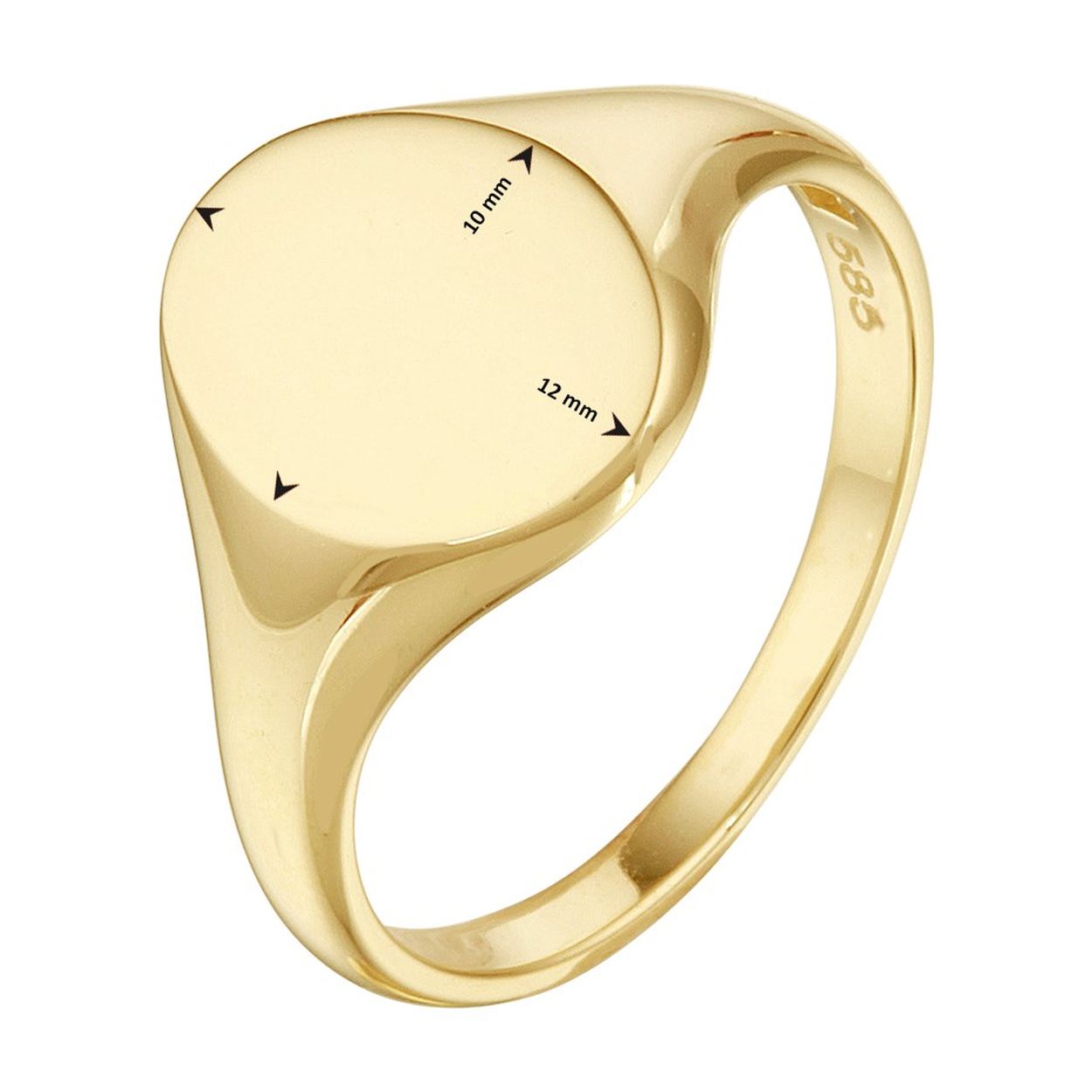 14k Geelgouden ovale graveerring. De ring heeft een breedte van 10mm.