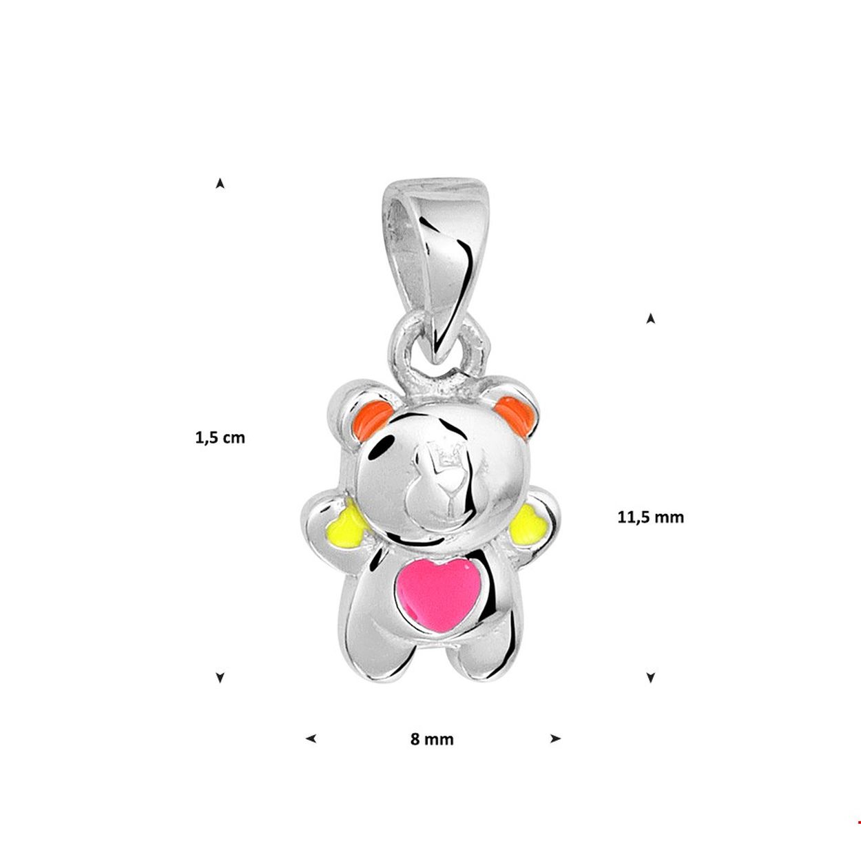 Beschrijving: Deze schattige gerhodineerd zilveren met emaille beer hanger heeft een afmeting van 15x8mm. De hanger is te combineren met bijpassende sieraden zodat er een leuke set van te maken is. Tip: Leuk om kado te geven aan kleine dametjes die willen stralen met schattige sieraden. Info: Gerhodineerd zilver is door de rhodiumlaag beter bestand tegen verkleuren en krassen.