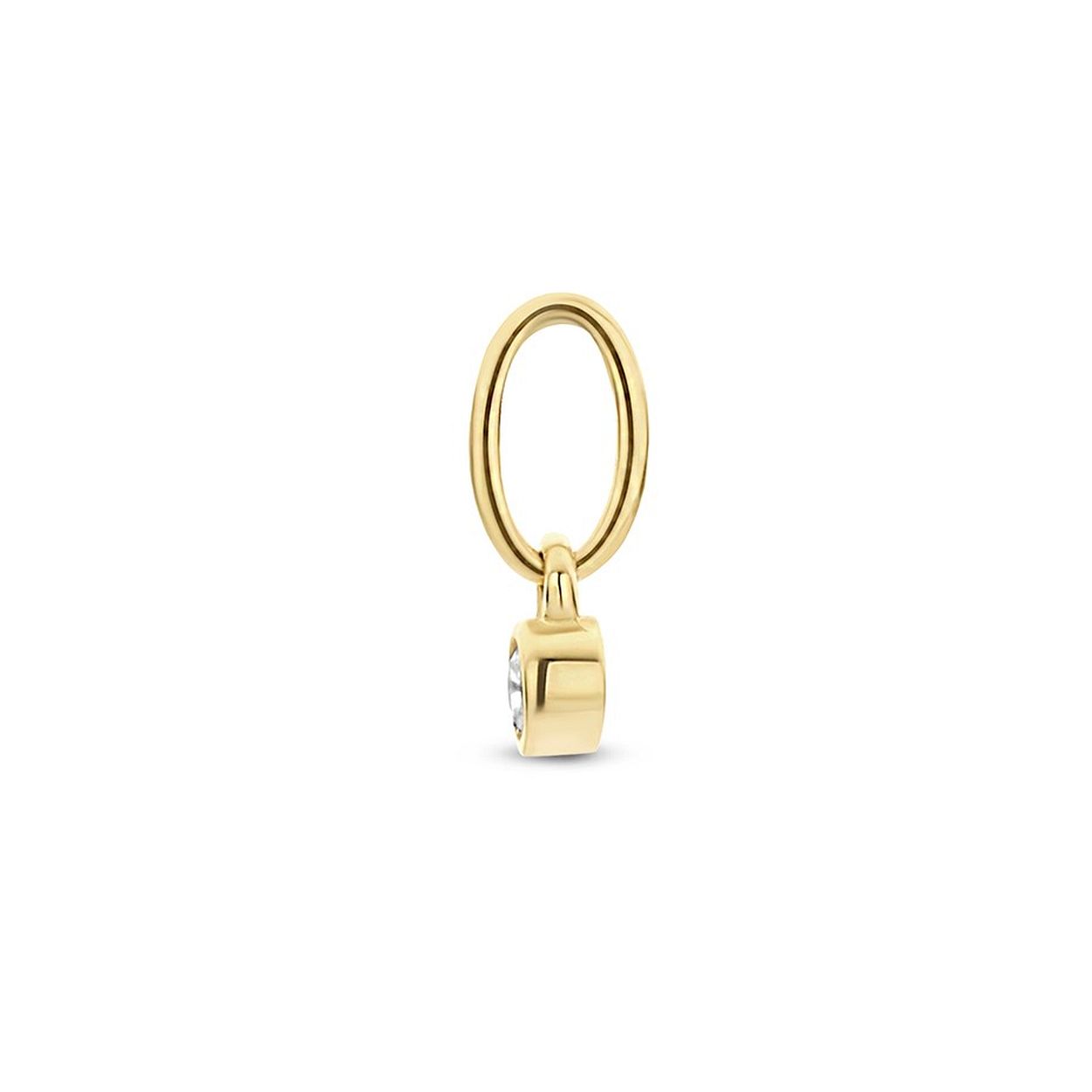 14k Geelgouden hanger uitgevoerd met een schitterende zirkonia. De hanger heeft een totale hoogte van 7mm en een breedte van 2mm.