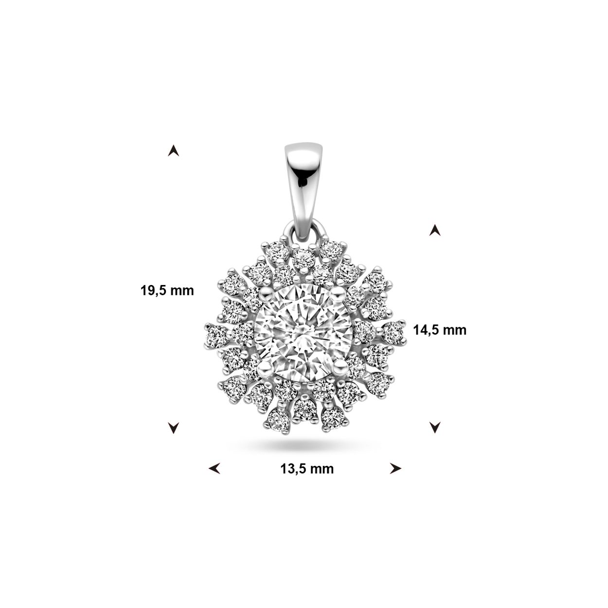 Gerhodineerd 925 zilveren hanger uitgevoerd met zirkonia. De hanger heeft een totale hoogte van 19.5mm.