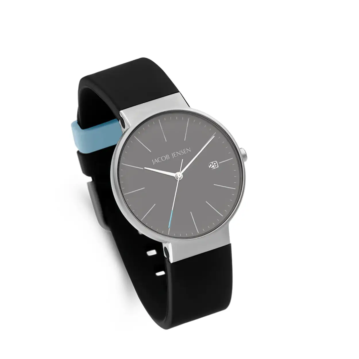 Dit Jacob Jensen horloge heeft een kast gemaakt van Titanium met een diameter van 37 mm en is voorzien van een Rubber band. In de kast bevindt zich een Miyota kwaliteitsuurwerk en is afgewerkt met Saffierglas.