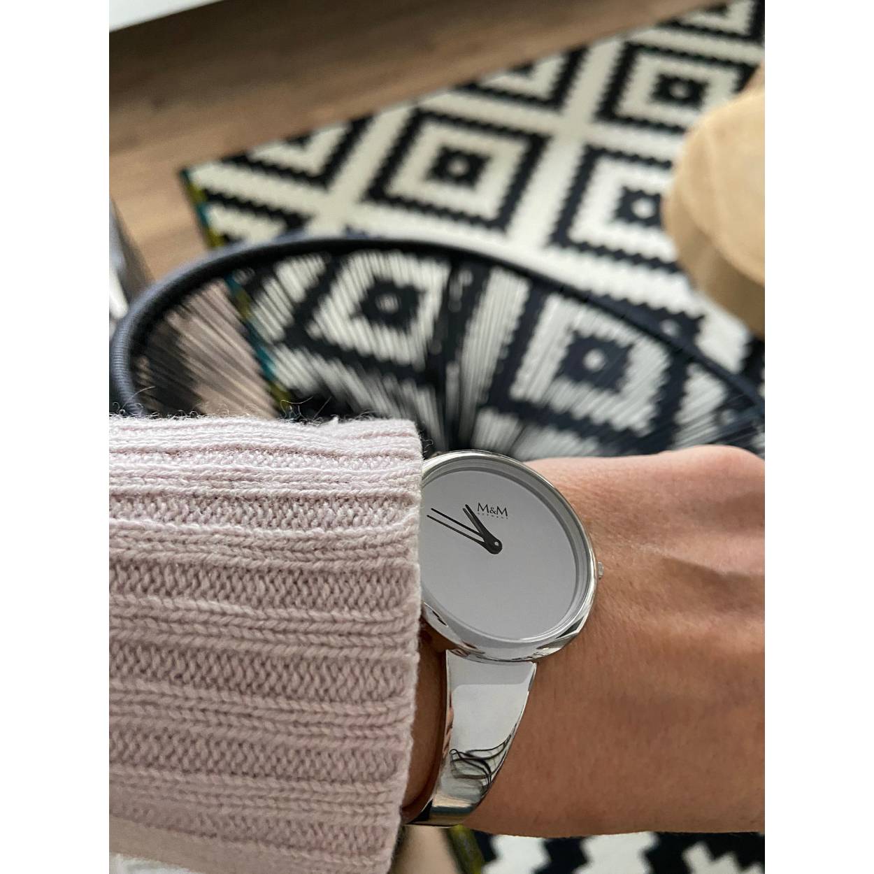 M&M dameshorloge met spangband en spiegelwijzerplaat, edelstaal