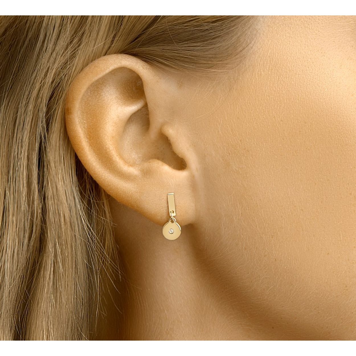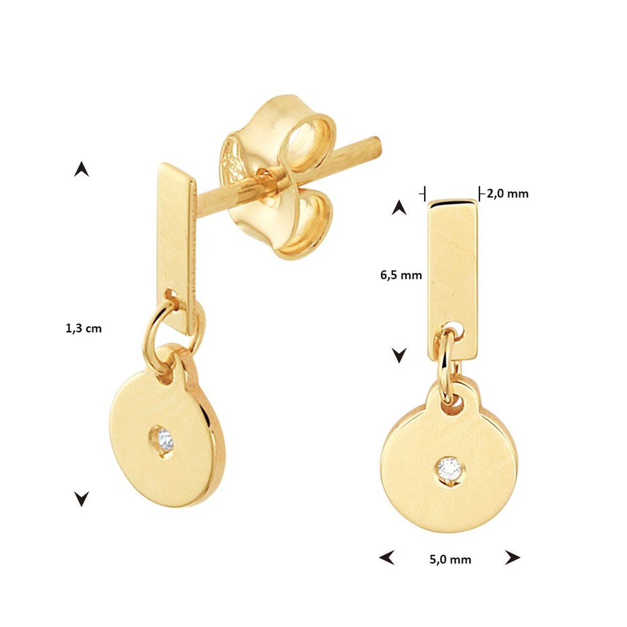 14k Geelgouden oorhangers uitgevoerd met een schitterende diamant. De oorhangers hebben een totale hoogte van 13mm.