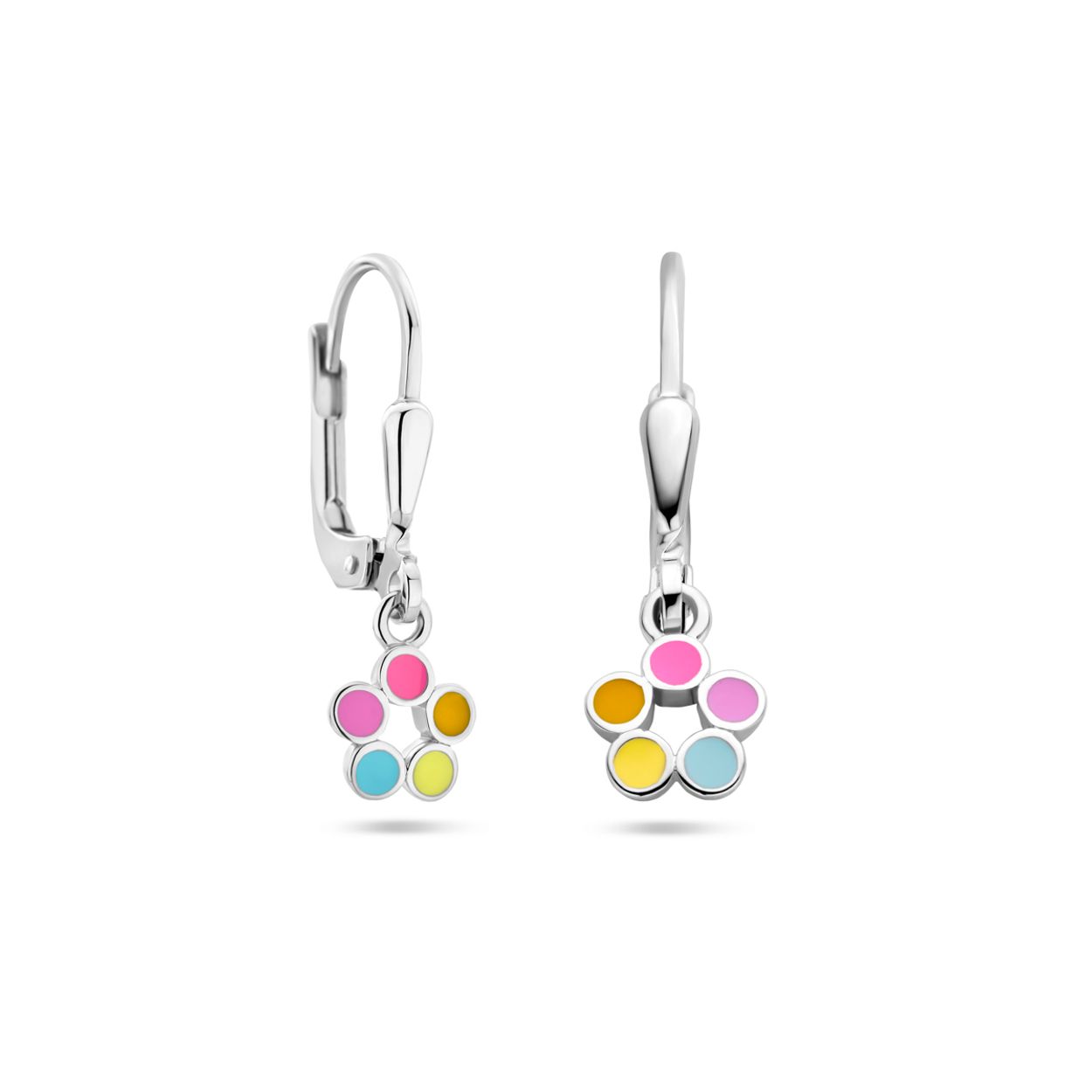 Gerhodineerd 925 zilveren oorhangers uitgevoerd met een bloem. De oorhangers hebben een totale hoogte van 22mm.