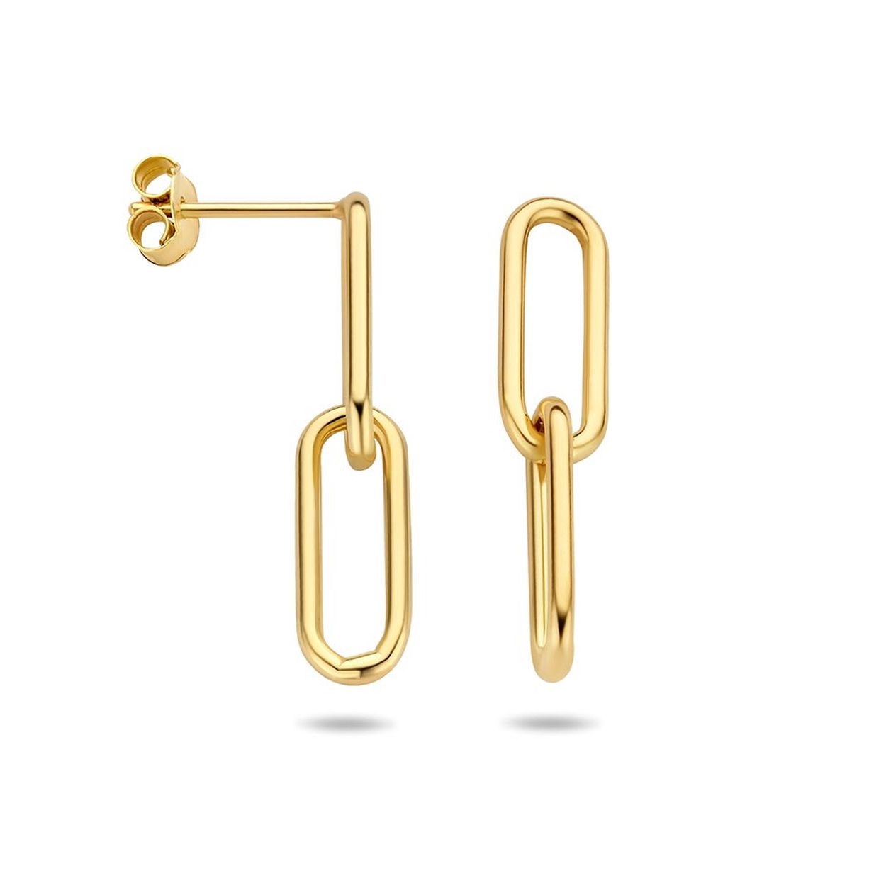 Geelgoud op 925 zilveren oorhangers. De twee schakels hebben een hoogte van 15.5mm en een breedte van 6mm.