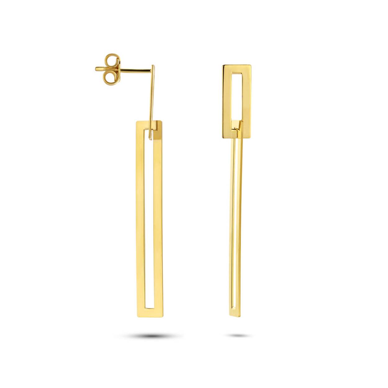 Geelgoud op 925 zilveren oorhangers met rechthoeken en een totale hoogte van 51mm. Geen garantie op plating.