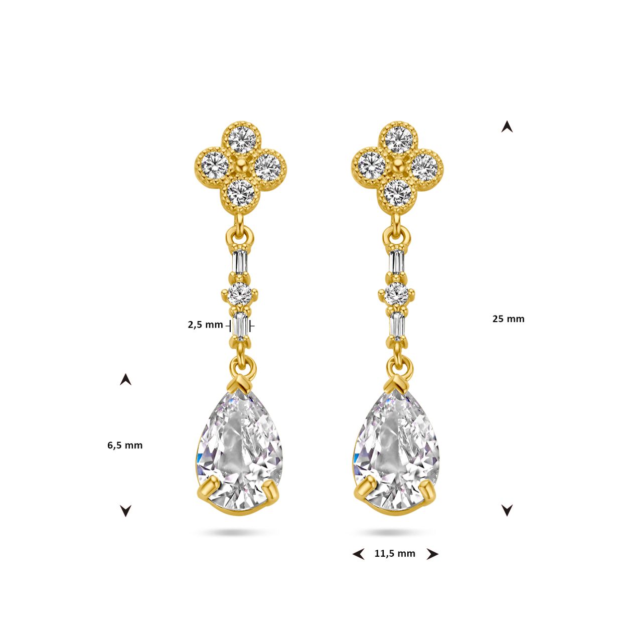 14k Geelgouden oorhangers uitgevoerd met zirkonia. De oorhangers hebben een totale hoogte van 25mm.