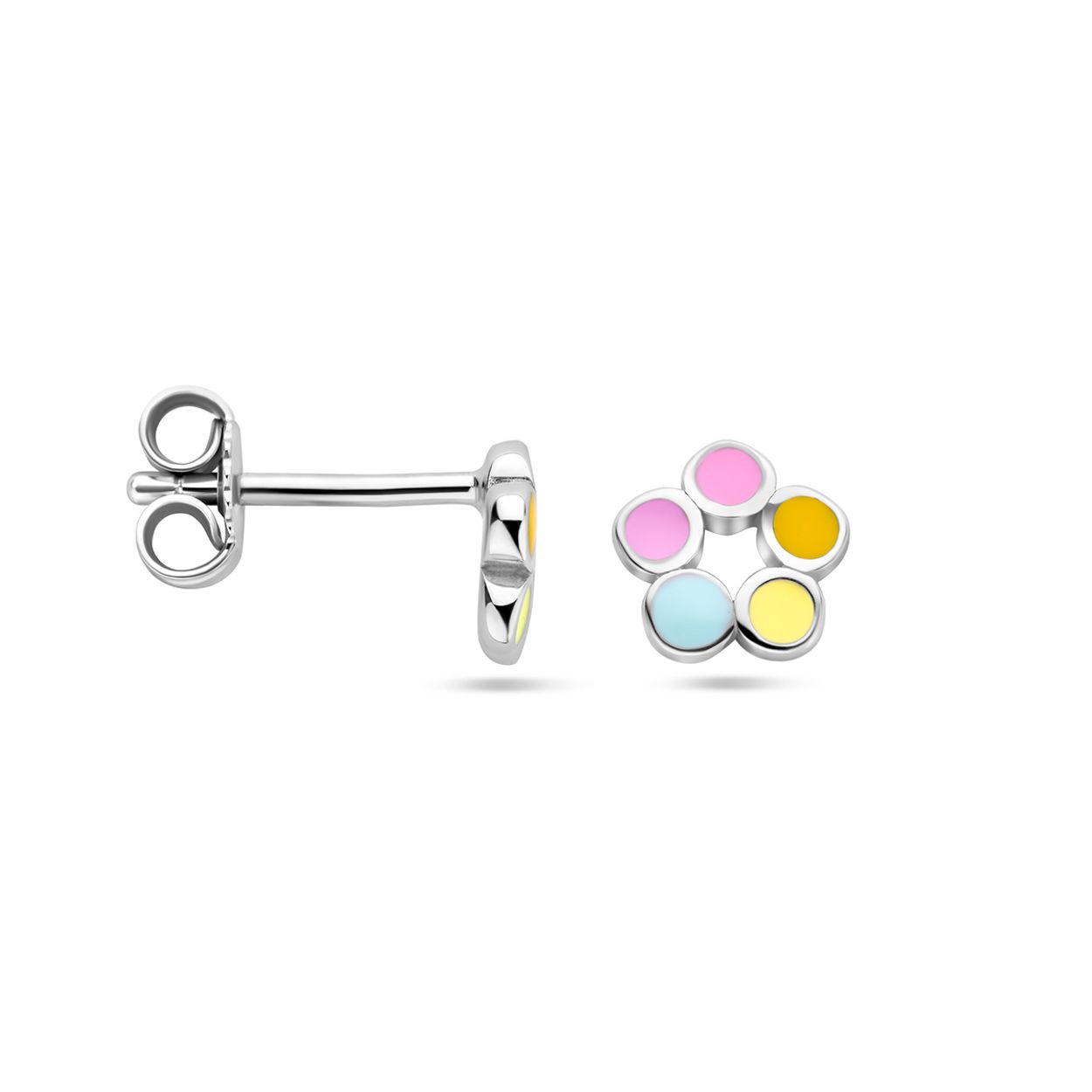 Gerhodineerd 925 zilveren oorknoppen in de vorm van een bloem. De oorknoppen hebben een afmeting van 6x6mm.