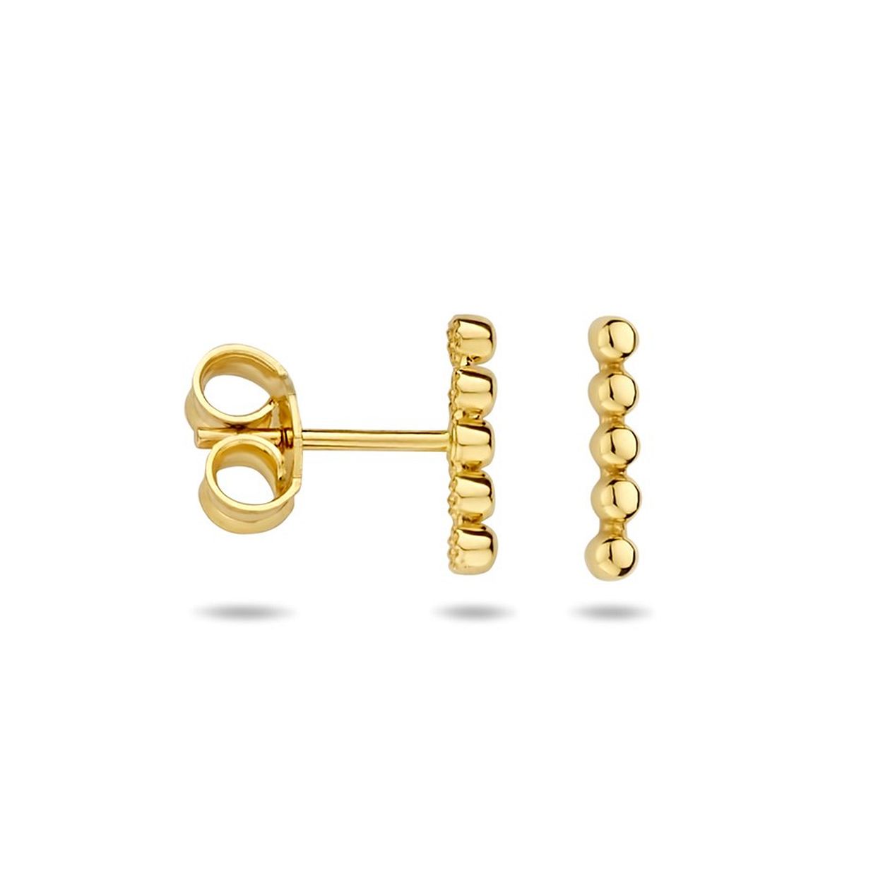 14k Geelgouden oorknoppen uitgevoerd met bolletjes. De oorknoppen hebben een afmeting van 9.5x2mm.