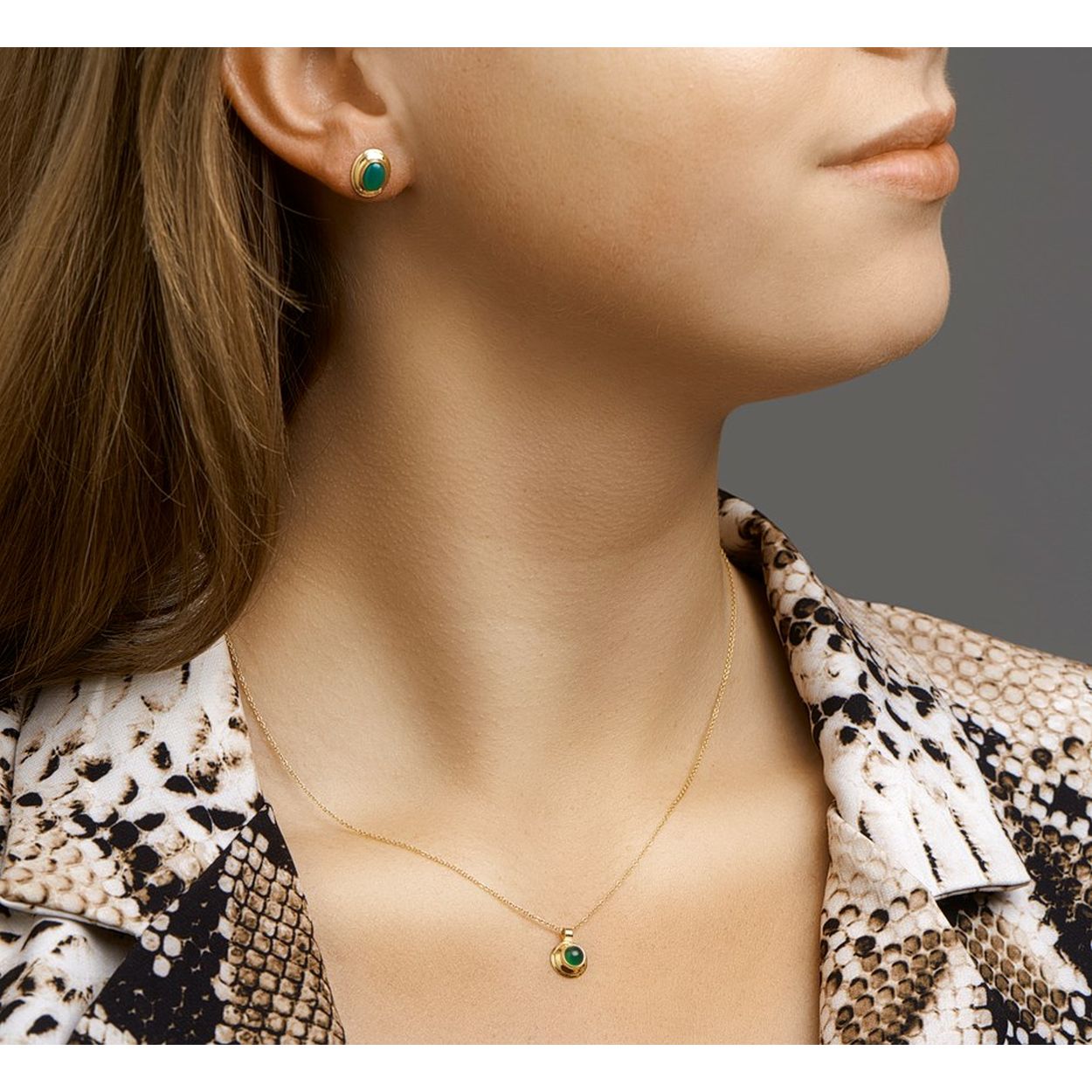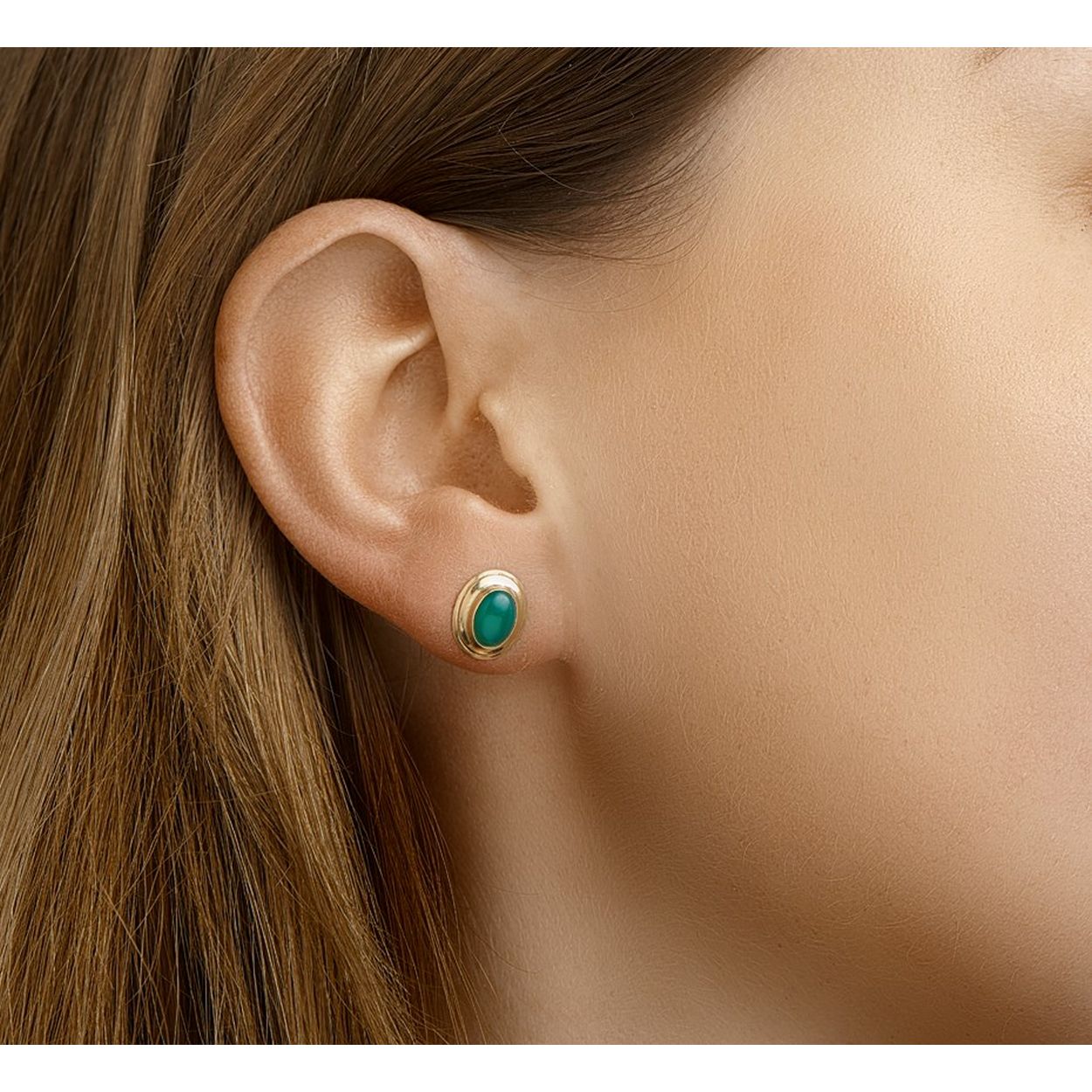 Klassieke 14k geelgouden oorknoppen uitgevoerd met een schitterende groen agaat. De oorknoppen hebben een afmeting van 11x8.5mm.