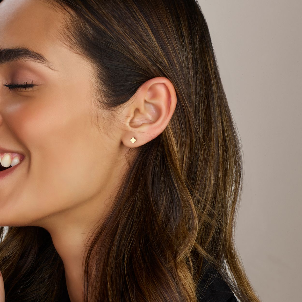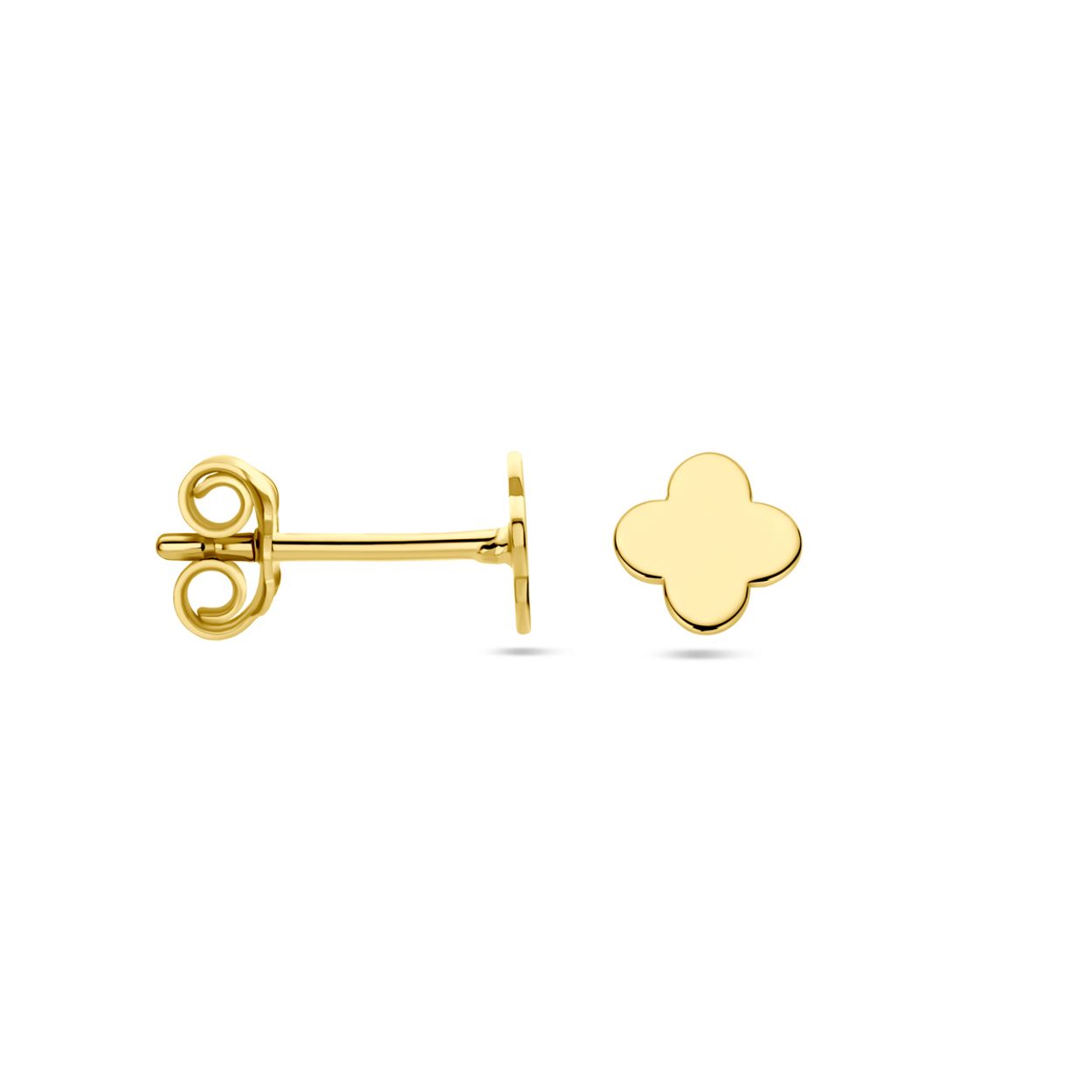 14k Geelgouden oorknoppen in de vorm van een klavertje.