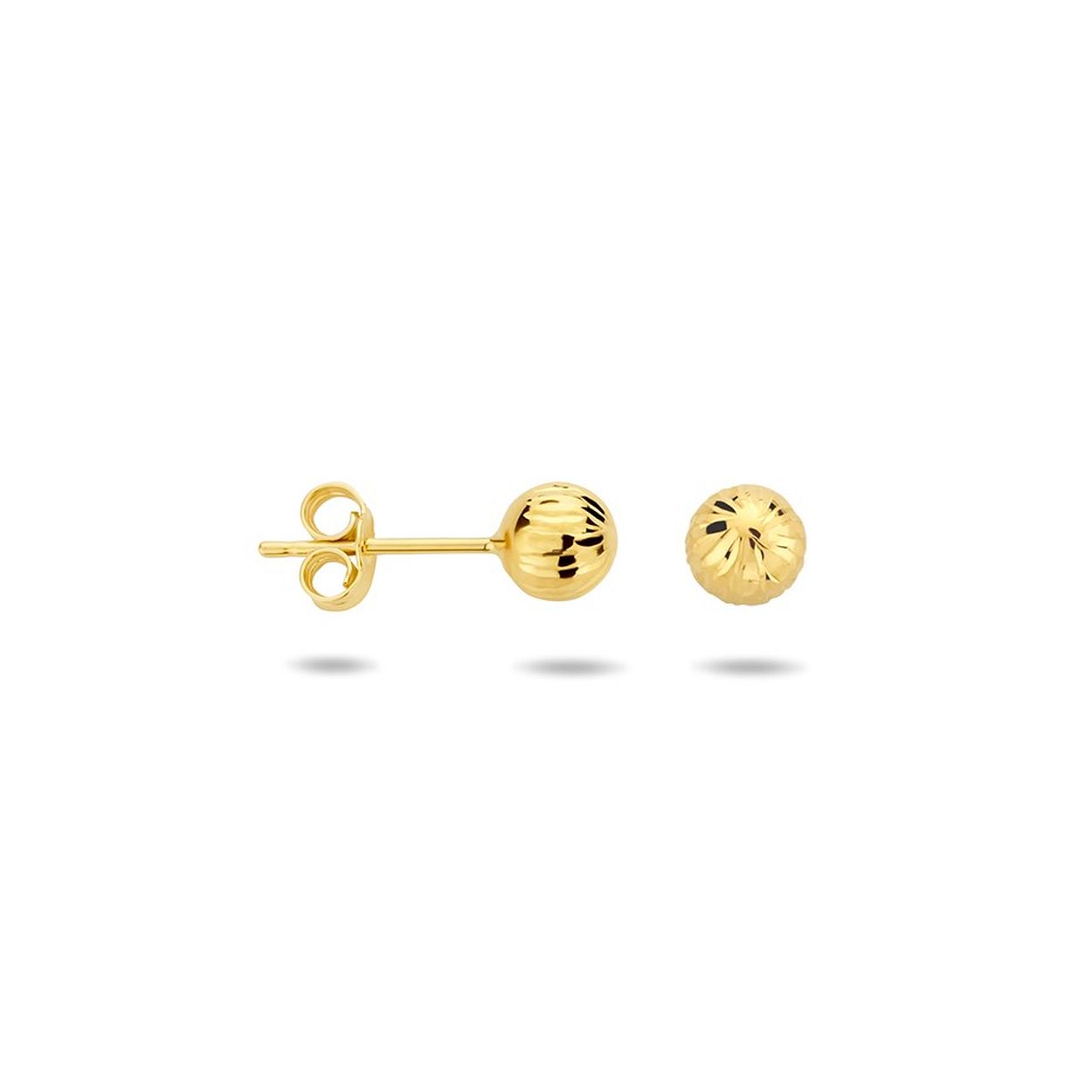 14k Geelgouden oorknoppen uitgevoerd met een gediamanteerde afwerking. De oorknoppen hebben een diameter van 5mm.