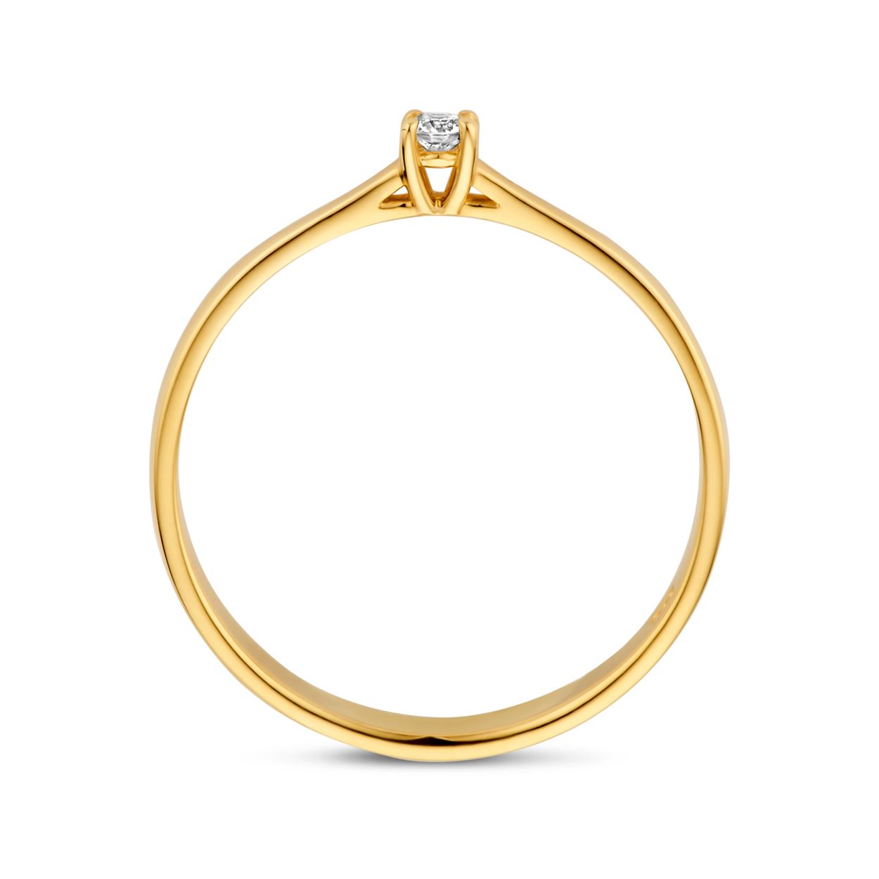14k Geelgouden ring uitgevoerd met zirkonia. De ring heeft een breedte van 2.5mm.