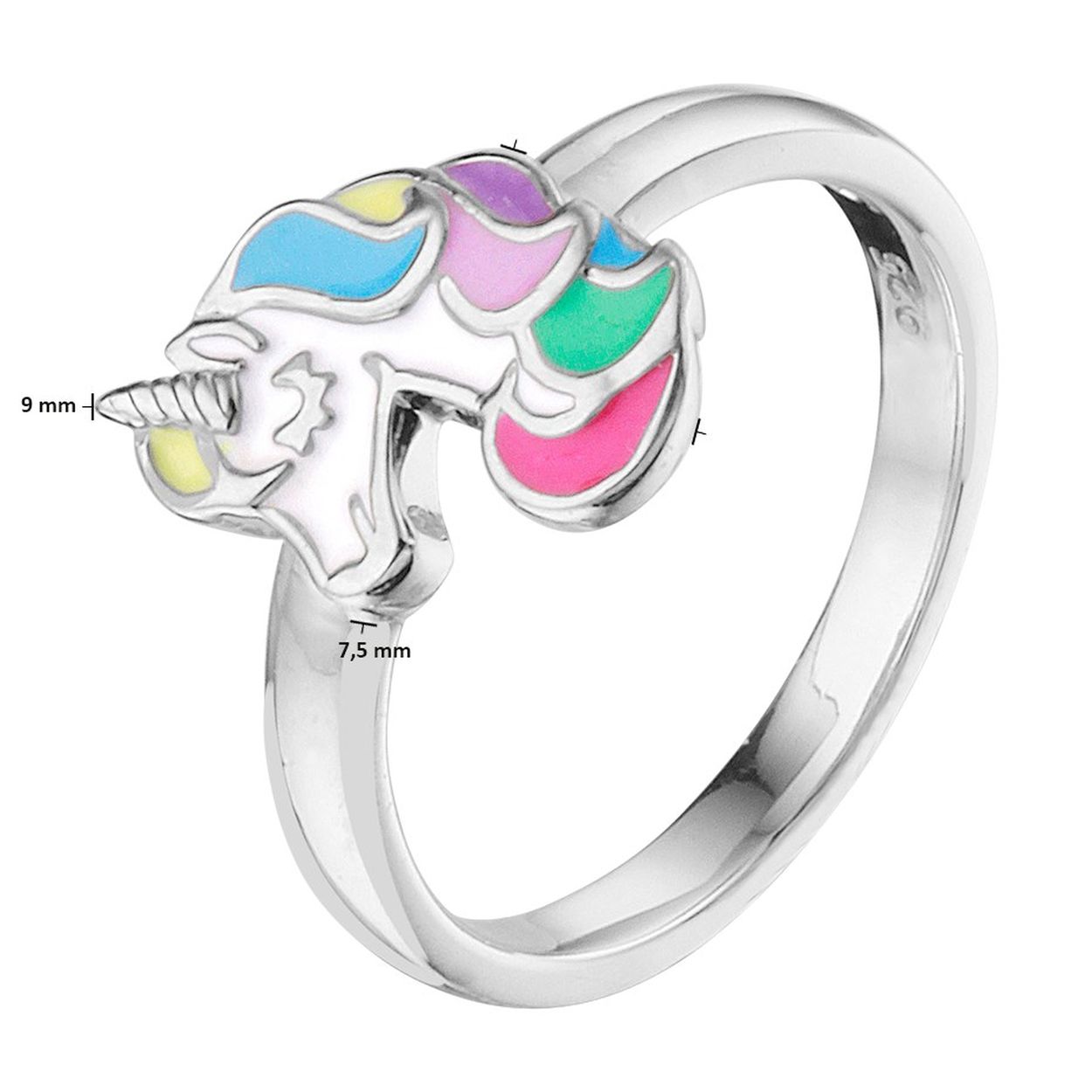 Gerhodineerd 925 zilveren ring uitgevoerd met een leuke eenhoorn. De ring heeft een breedte van 7.5mm.