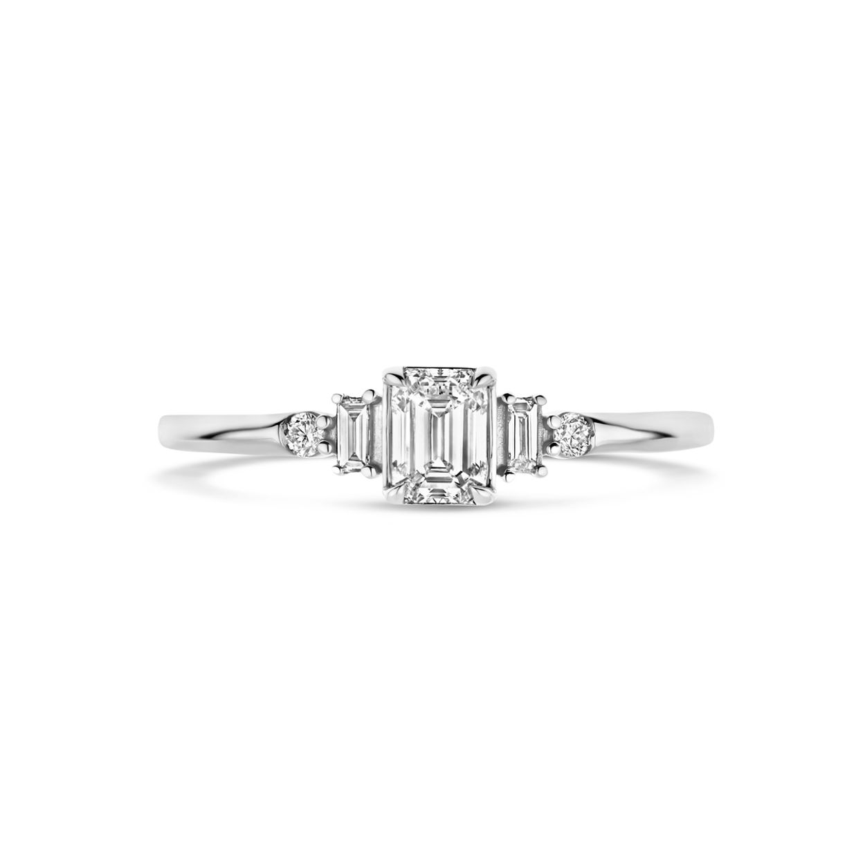 14k Witgouden ring uitgevoerd met lab grown diamanten. De ring heeft een breedte van 5mm. De totale diamantgewicht is 0.405ct.