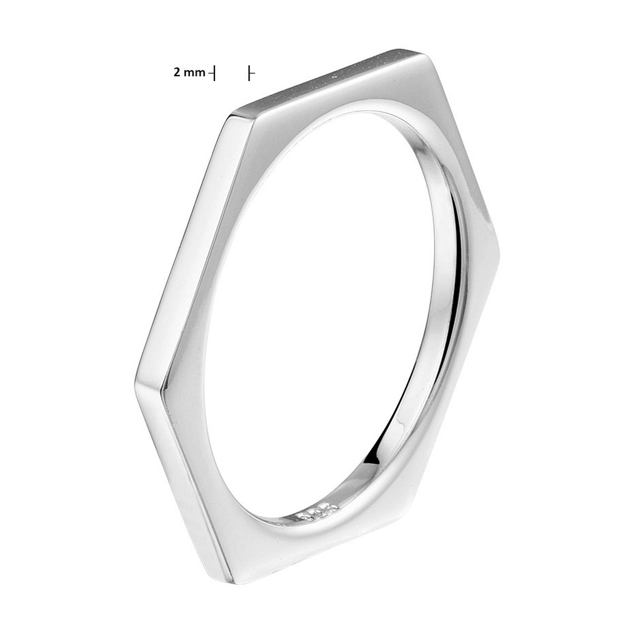 Gerhodineerd 925 zilveren ring in de vorm van een zeshoek. De ring heeft een breedte van 2mm.