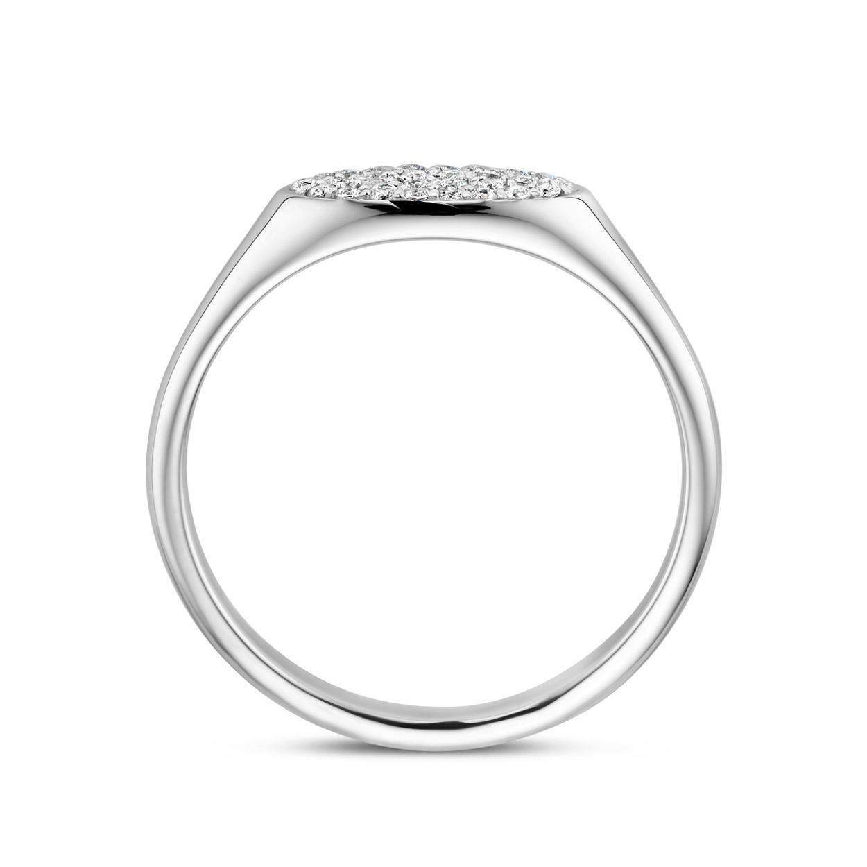 Gerhodineerd 925 zilveren ring uitgevoerd met zirkonia. De ring heeft een breedte van 5mm.