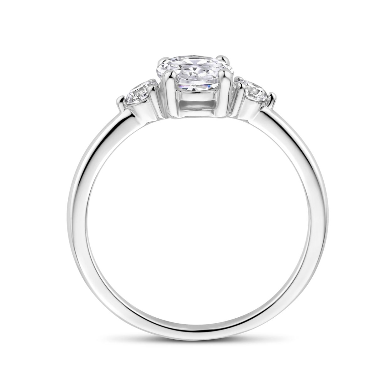 Gerhodineerd 925 zilveren ring uitgevoerd met zirkonia. De breedte van de ring is 7mm.