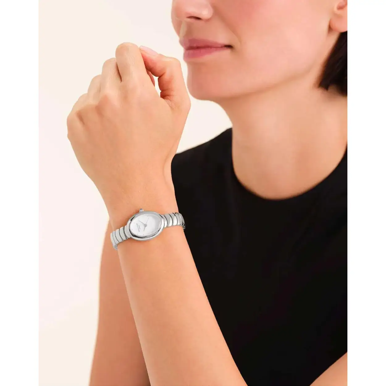 Stalen ovaal horloge met schakelband. 22x29mm