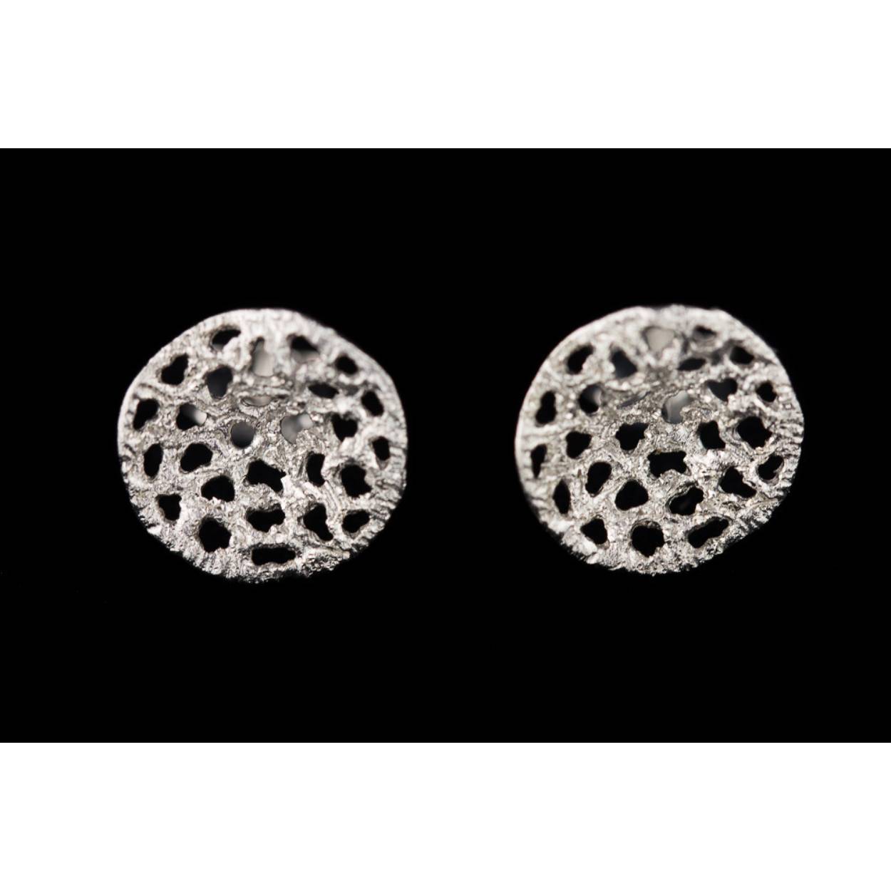 Schattige kleine oorstekers van zilver, rondvormig met gaatjes. Bijpassend bij de serie Londen
