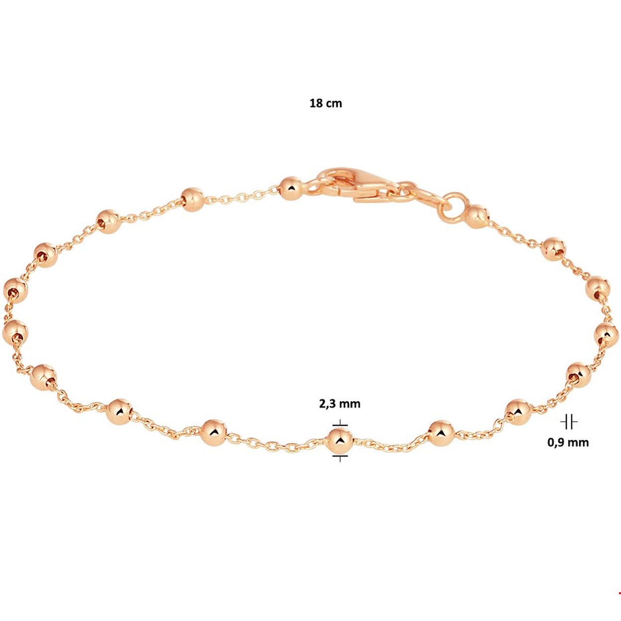 Beschrijving: Trendy 14k rosegouden armband uitgevoerd met bolletjes van 2.3mm. De armband heeft een stevige karabijn sluiting en een draaglengte van 18cm. Tip: Combineer de armband met bijpassende bolletjes sieraden en maak zo een leuke set!