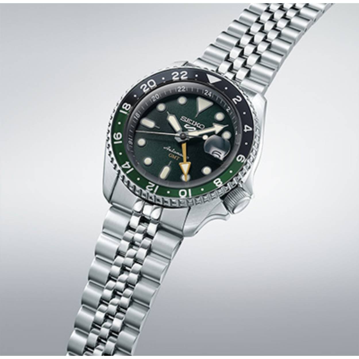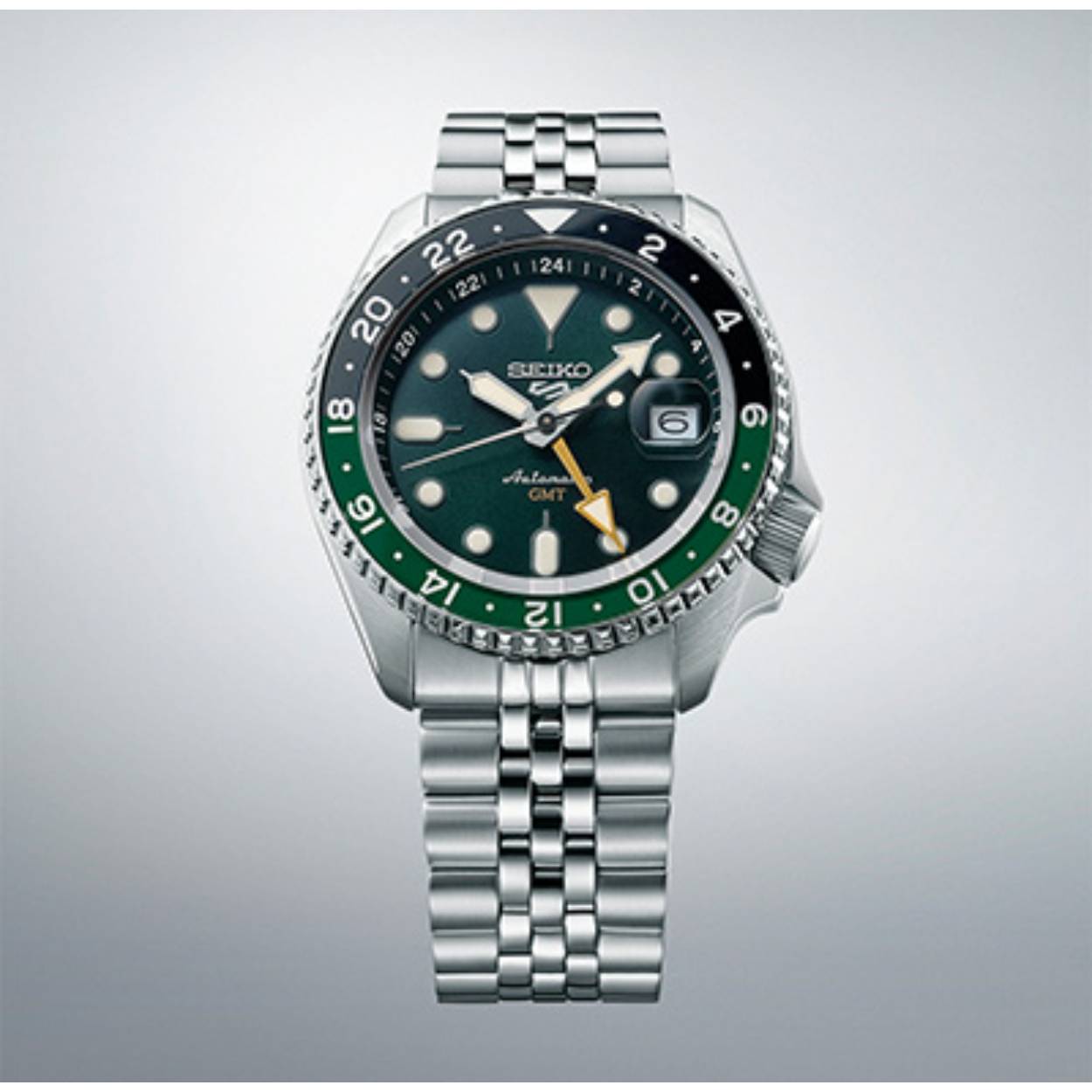 SEIKO SPORTS 5 AUTOMAAT met edelstalen band en groene wijzerplaat: