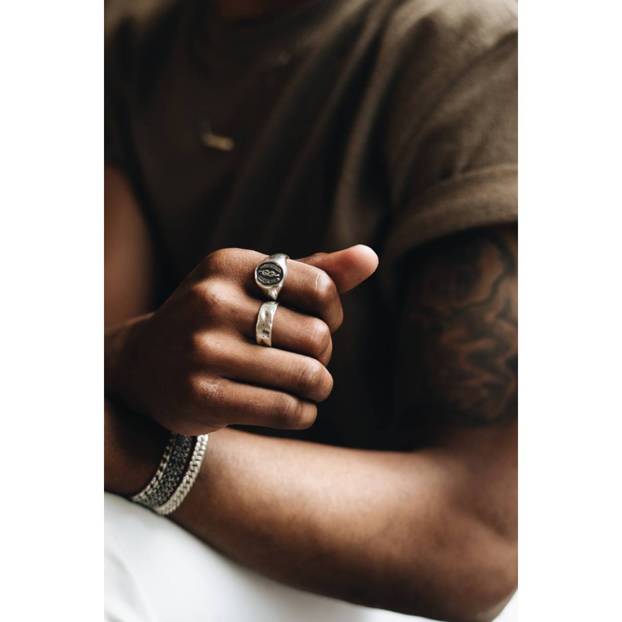 Geïnspireerd door klassieke zegelringen, maar ontworpen met een twist. Op de zwaar geoxideerde voorkant van deze ring vind je de Latijnse inscriptie: 'Aut viam inveniam, aut faciam', ofwel 'Ik zal een weg vinden, of er een creëren'. Het gekantelde en geknoopte oneindigheidssymbool staat voor de vastberadenheid om daar nooit mee te stoppen.