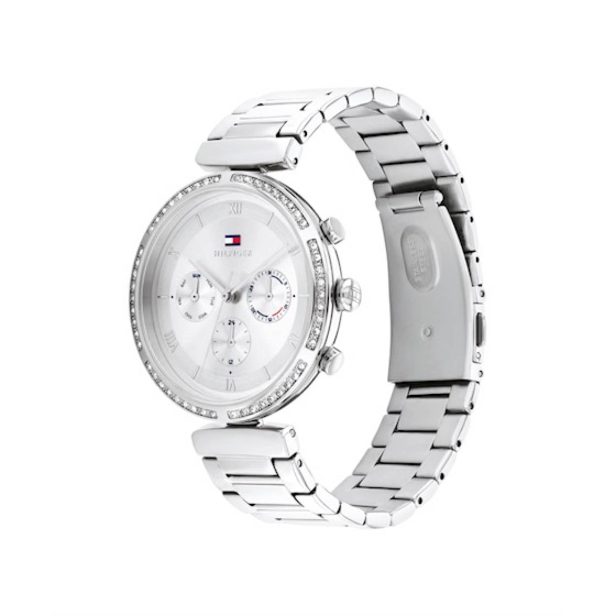 Het horloge is voorzien van een geschakelde, edelstalen band met 8 verwijderbare schakels. Het horloge is een eyecatcher die je altijd op maat kan dragen. De diameter van de horlogekast is 38mm en daardoor een bescheiden accessoire. Het horloge is 3 ATM spatwaterdicht.