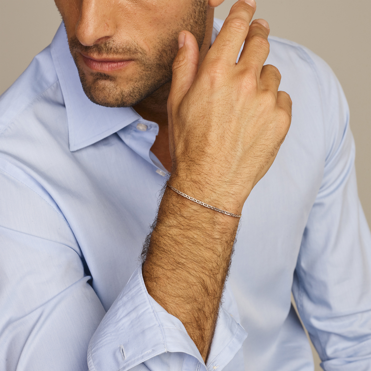 925 Zilveren lengteartikel met een schakelbreedte van 2.3mm. Uitgevoerd met een karabijn sluiting.