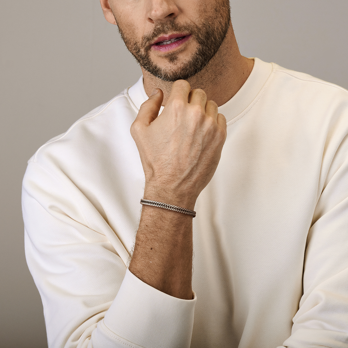 Geoxideerd 925 zilveren vossestaart armband met een schakelbreedte van 6.4mm.