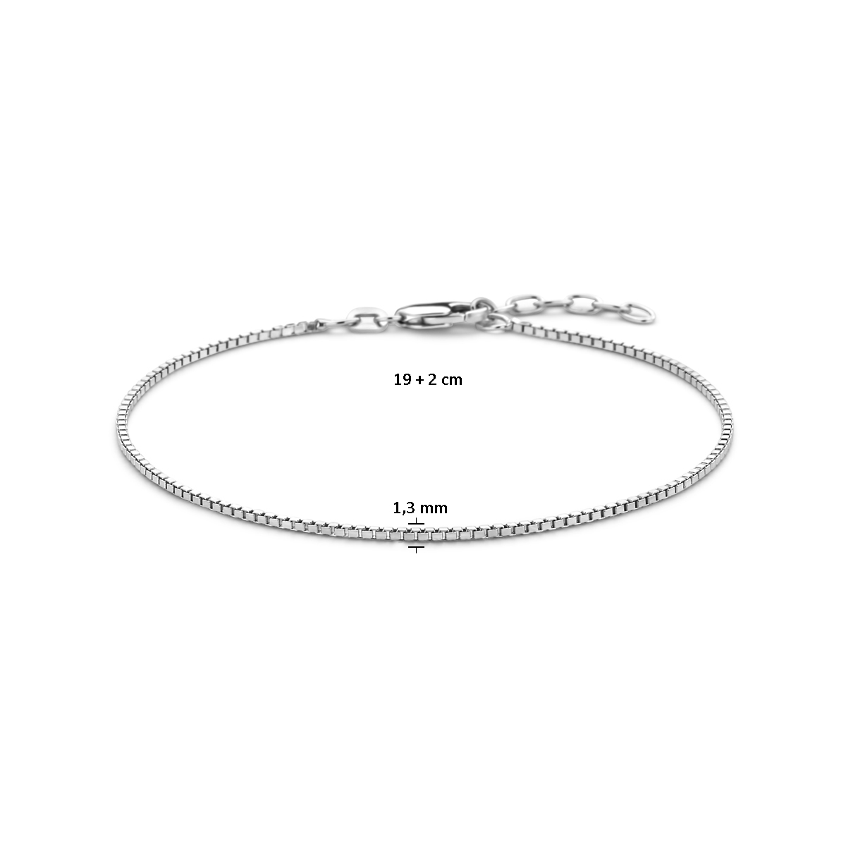 Gerhodineerd 925 armband uitgevoerd met een venetiaans schakel van 1.3mm. De armband heeft een draaglengte van 19cm met 2cm extensie.