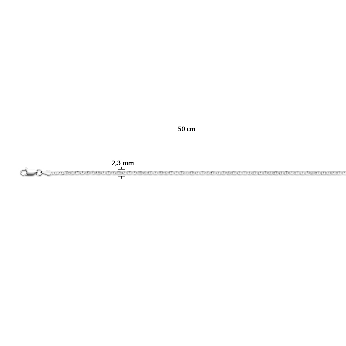 925 Zilveren lengteartikel met een schakelbreedte van 2.3mm. Uitgevoerd met een karabijn sluiting.